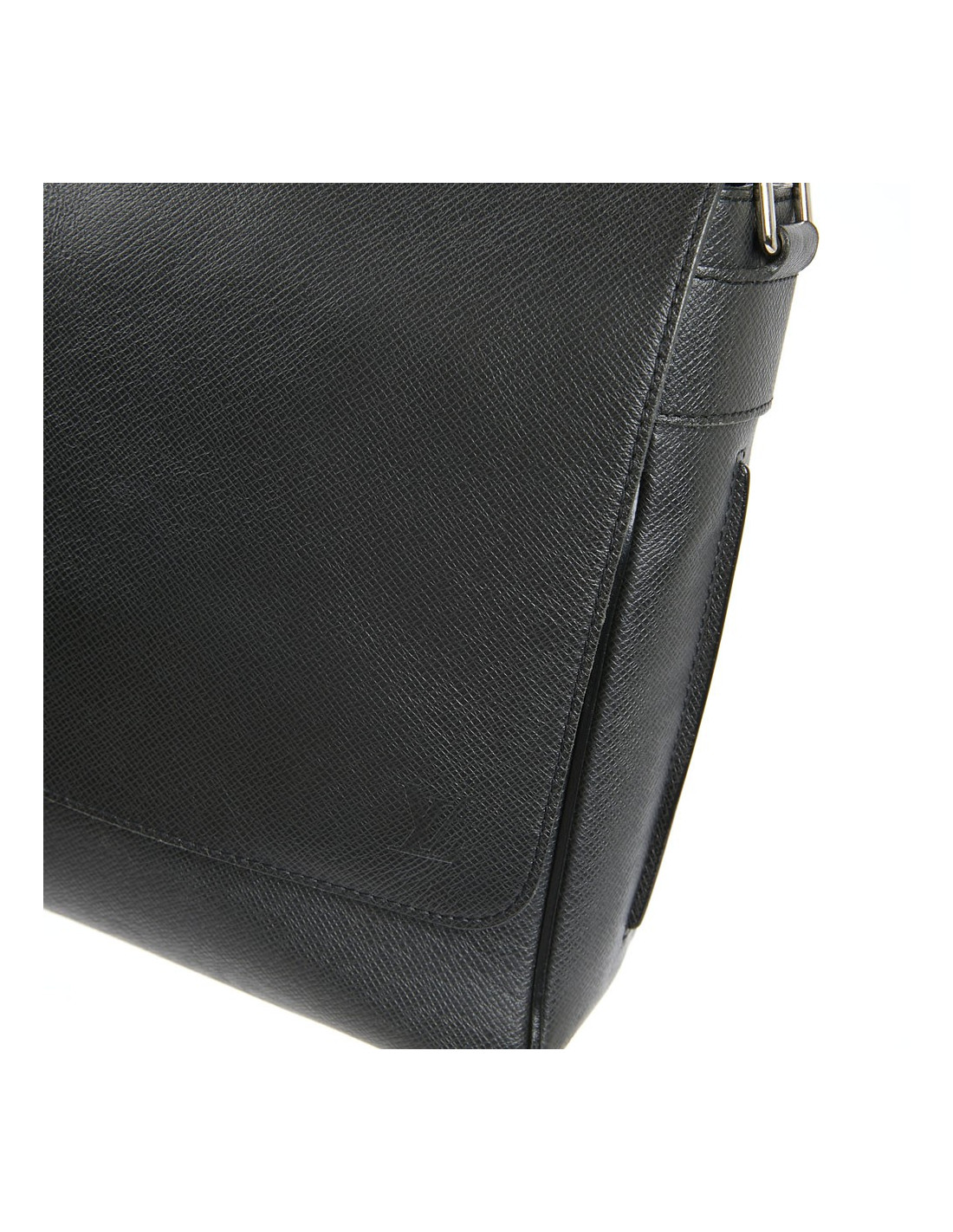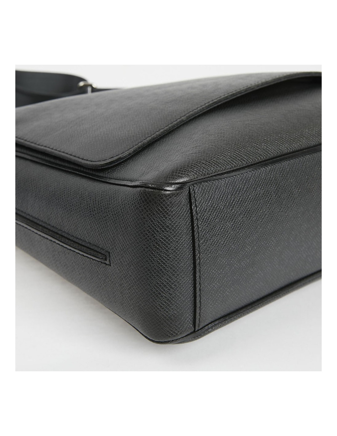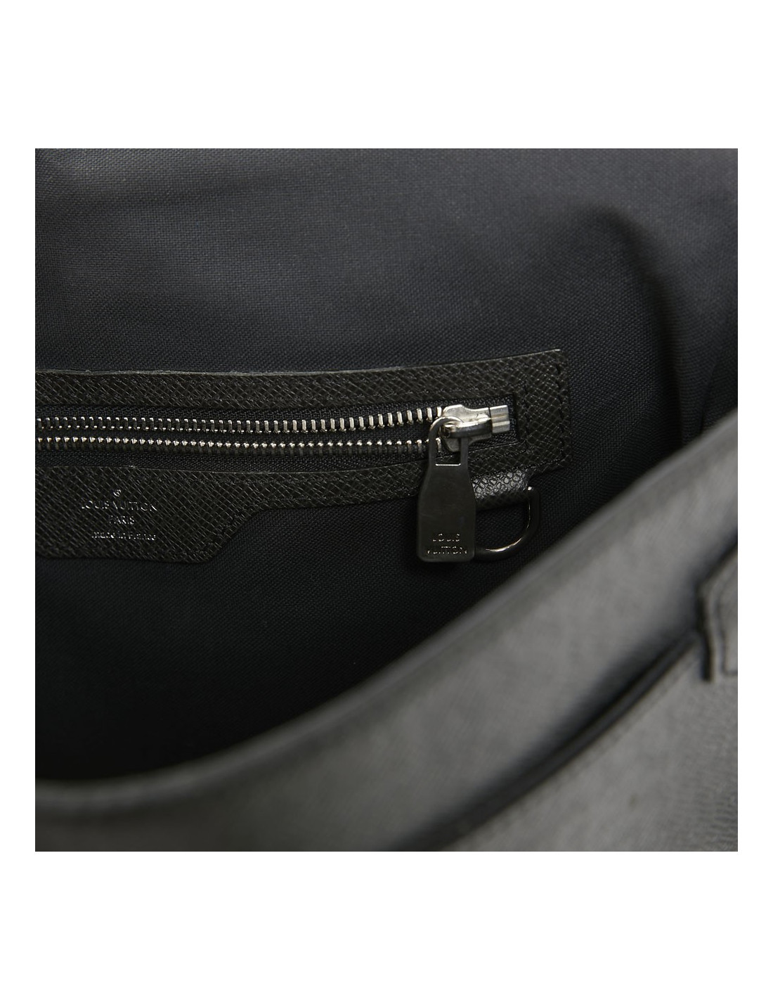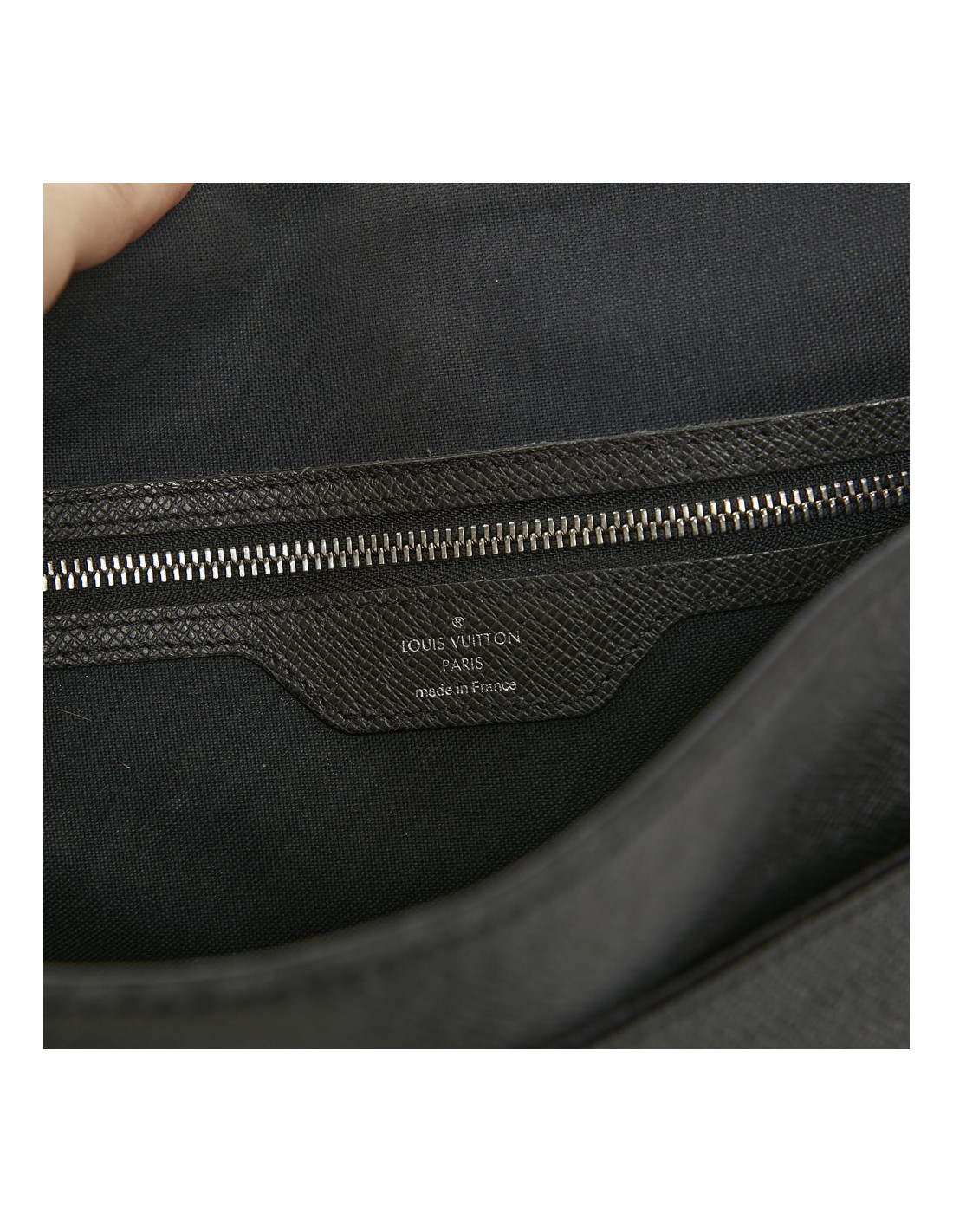 Ce sac Louis Vuitton est issu de la collection Roman. Il est en cuir Taïga noir, un cuir spécialement conçu pour les hommes qui a été lancé en 1993 par la Maison LV. La doublure est en textile noir avec une pochette zippée. A l'avant et l'arrière du sac vous aurez une grande poche plaquée. La bijouterie est en métal argent, fermeture par un rabat aimanté. Il est en très bon état, les coin sont légèrement patinés.