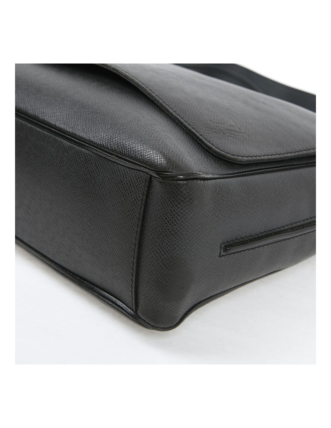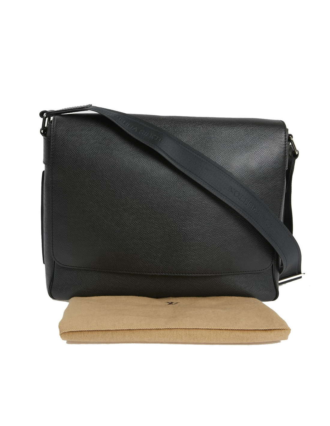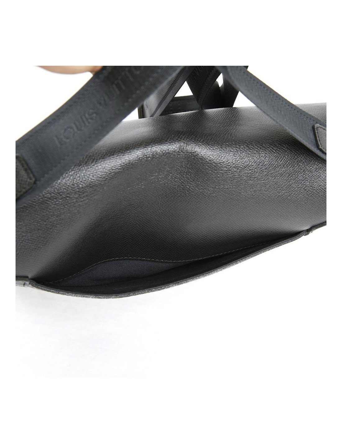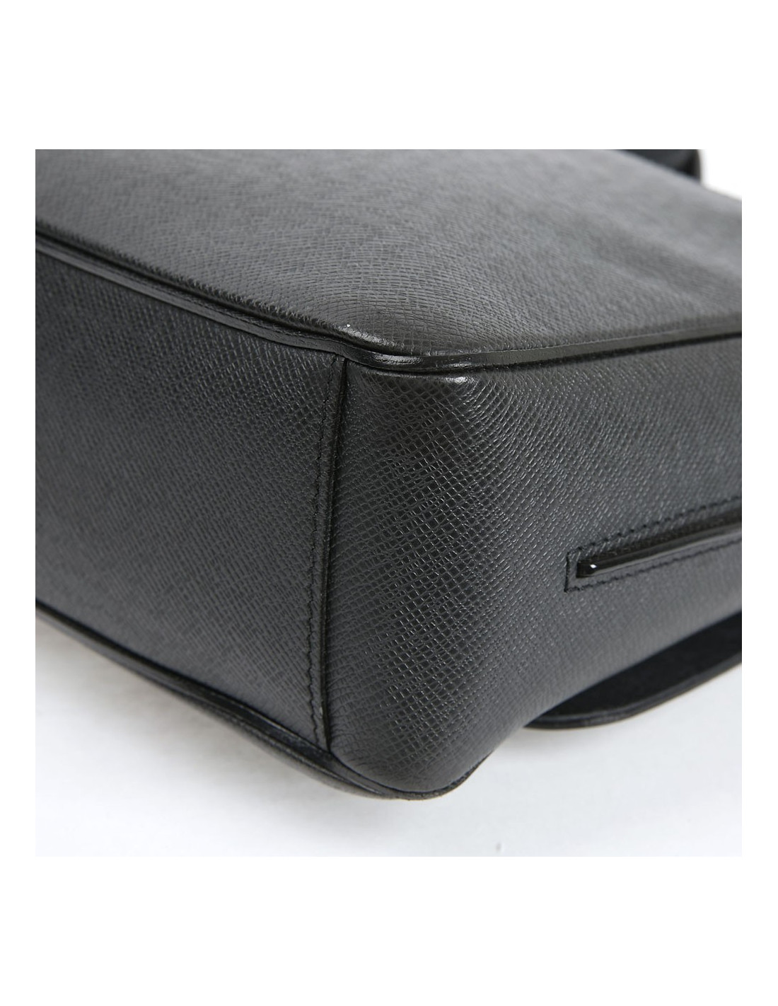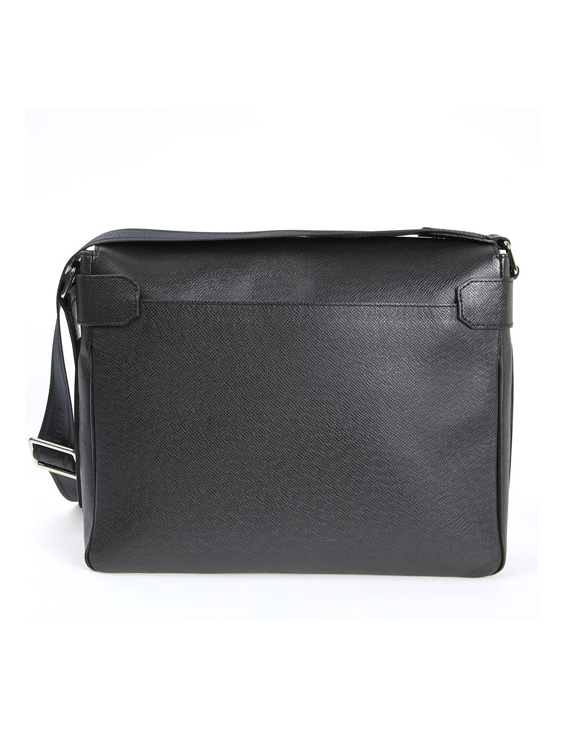 Ce sac Louis Vuitton est issu de la collection Roman. Il est en cuir Taïga noir, un cuir spécialement conçu pour les hommes qui a été lancé en 1993 par la Maison LV. La doublure est en textile noir avec une pochette zippée. A l'avant et l'arrière du sac vous aurez une grande poche plaquée. La bijouterie est en métal argent, fermeture par un rabat aimanté. Il est en très bon état, les coin sont légèrement patinés.