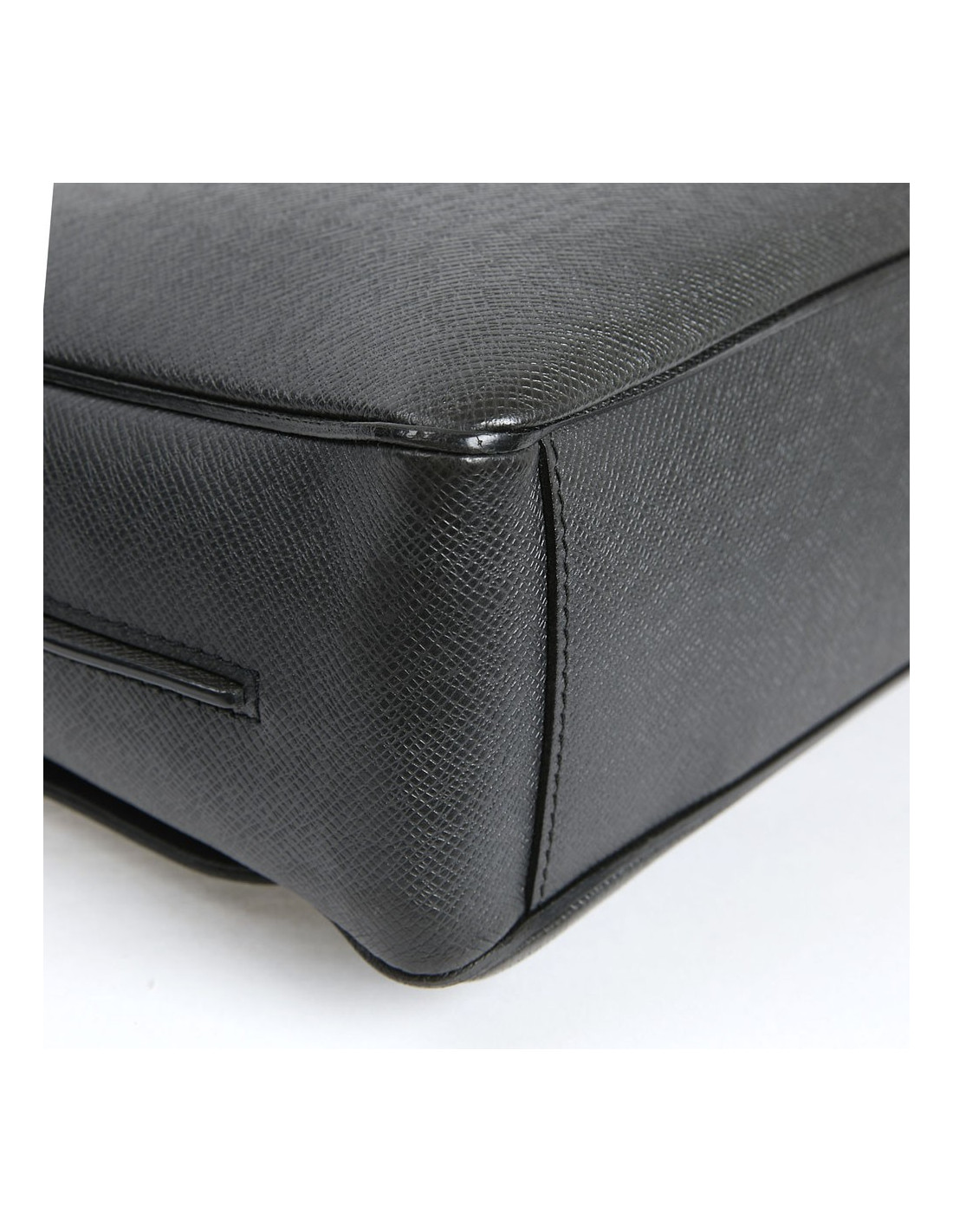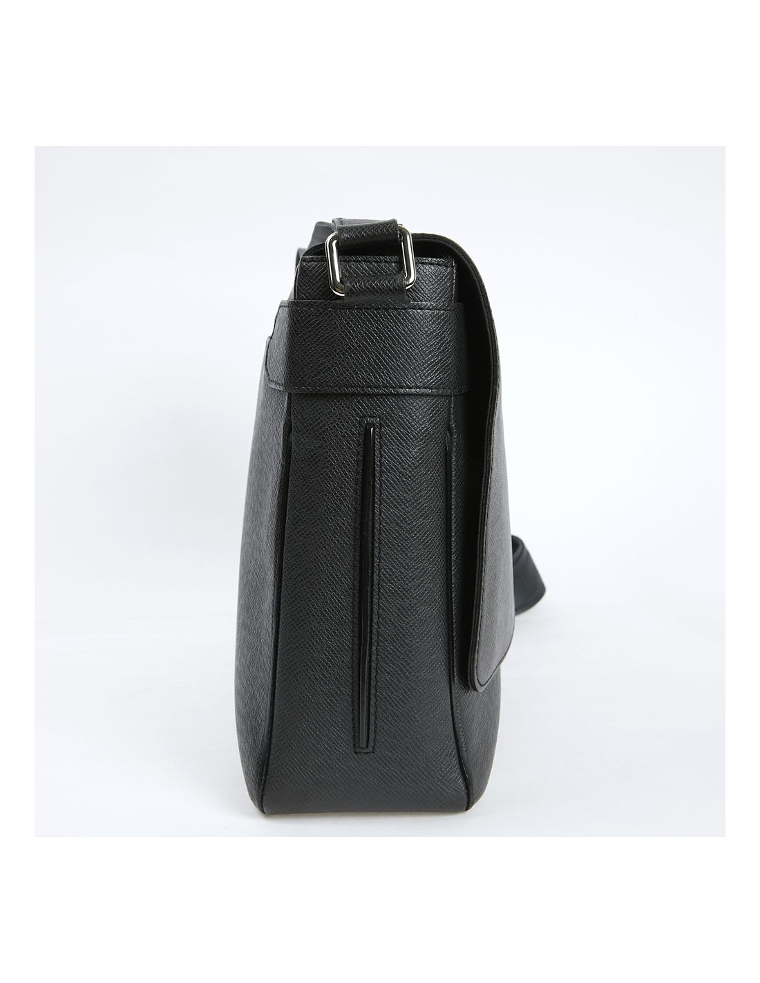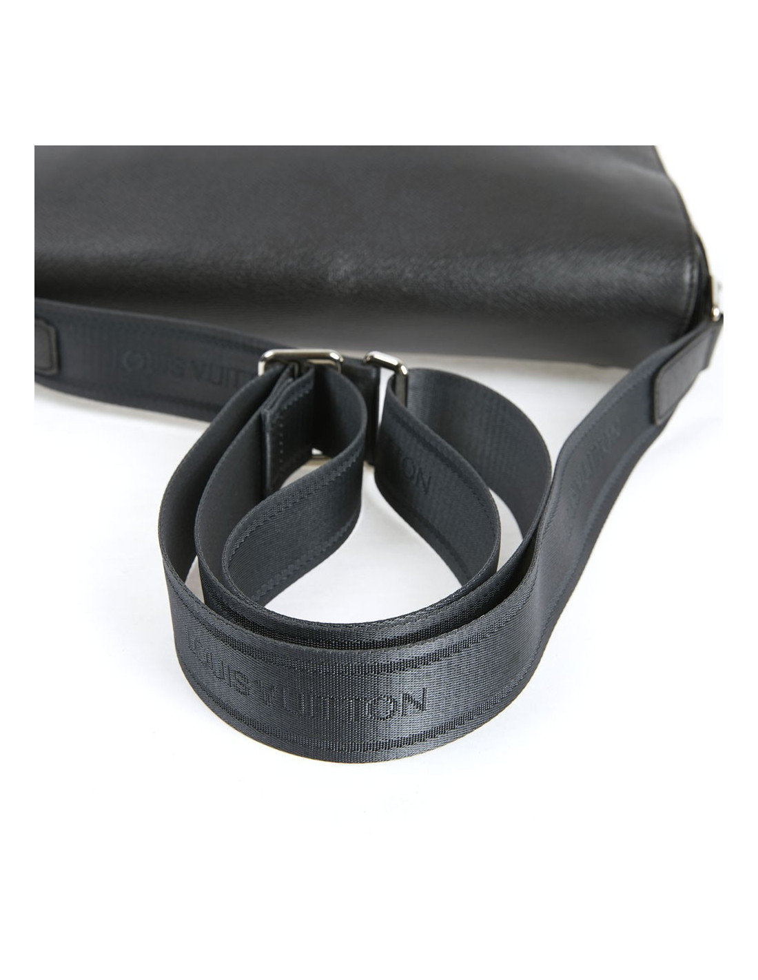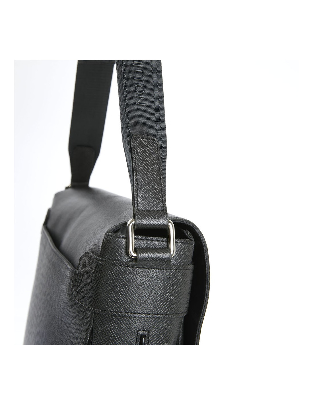 Ce sac Louis Vuitton est issu de la collection Roman. Il est en cuir Taïga noir, un cuir spécialement conçu pour les hommes qui a été lancé en 1993 par la Maison LV. La doublure est en textile noir avec une pochette zippée. A l'avant et l'arrière du sac vous aurez une grande poche plaquée. La bijouterie est en métal argent, fermeture par un rabat aimanté. Il est en très bon état, les coin sont légèrement patinés.