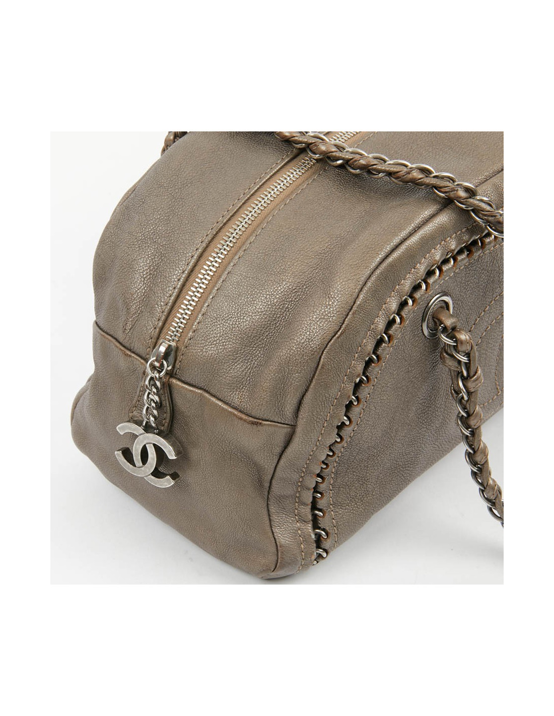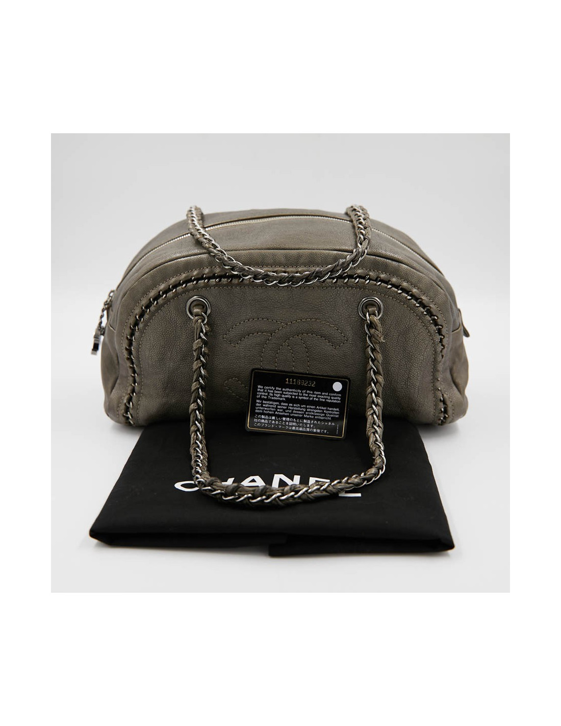 Il a été indiqué bon état car il y a des traces sur les coins. L'intérieur est doublé entièrement en cuir noir avec 3 poches, deux en fente et une zippée.