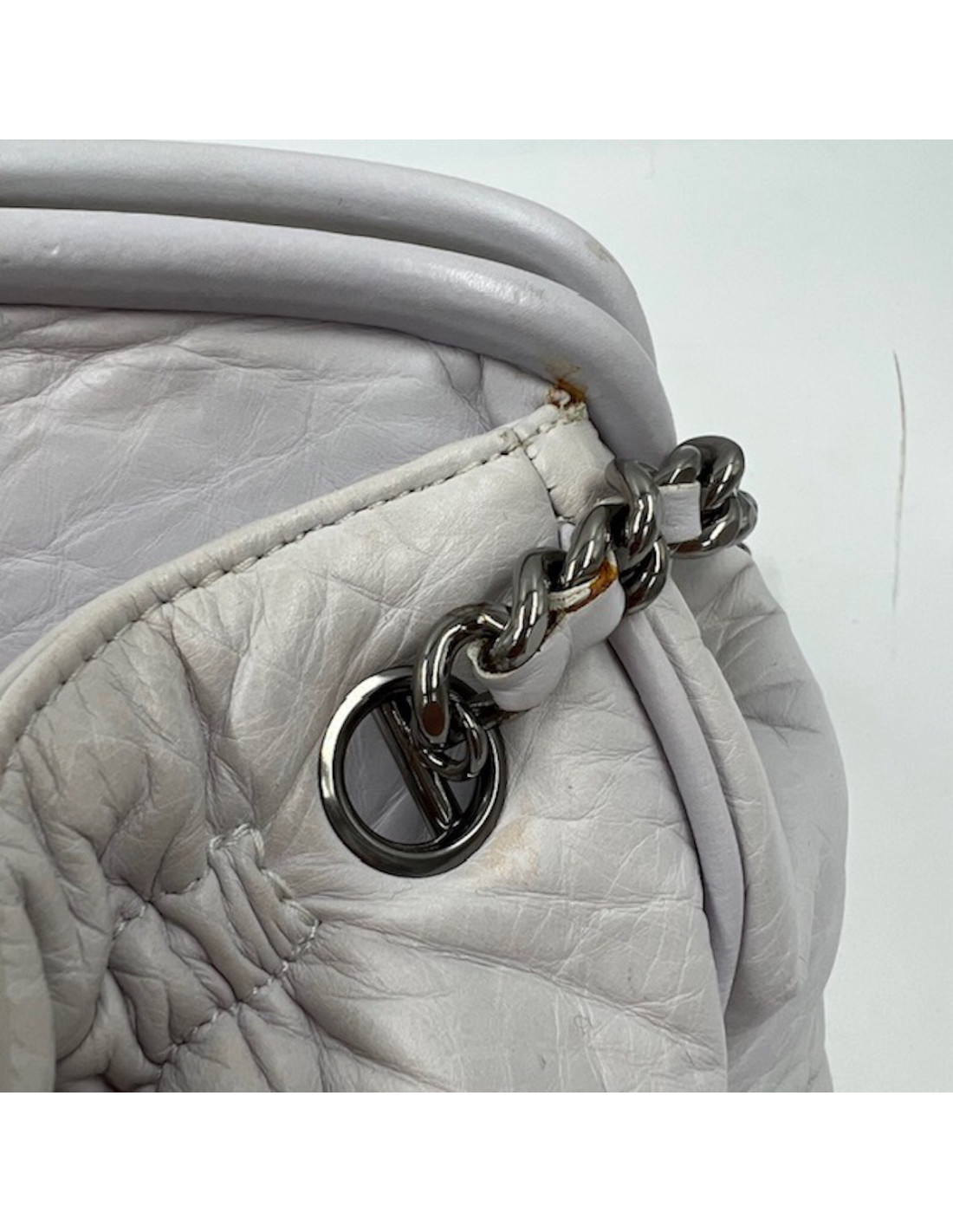 Détails : trois espaces distincts de rangement, se porte à l'épaule. Le cuir est légèrement déchiré sur un demi centimètre (à peine visible) sur une des poches (voir photo) et des petites taches sur la doublure. Sac issu de la collection Métiers d'Art Paris-New York 2018/2019