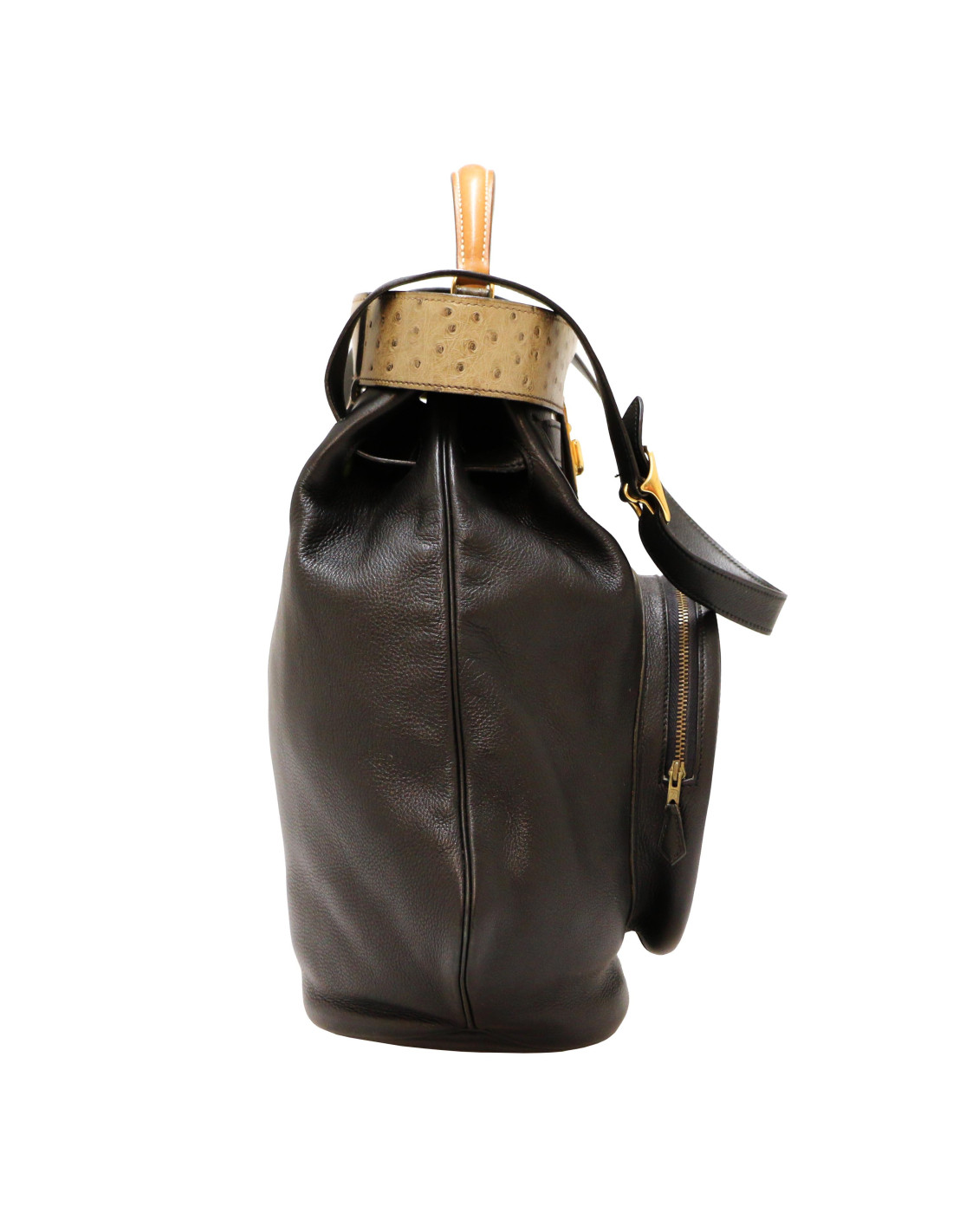 Rarissime Sac de golf HERMES Sumac en veau Gulliver noir, lézard et autrucheCondition : très bon état