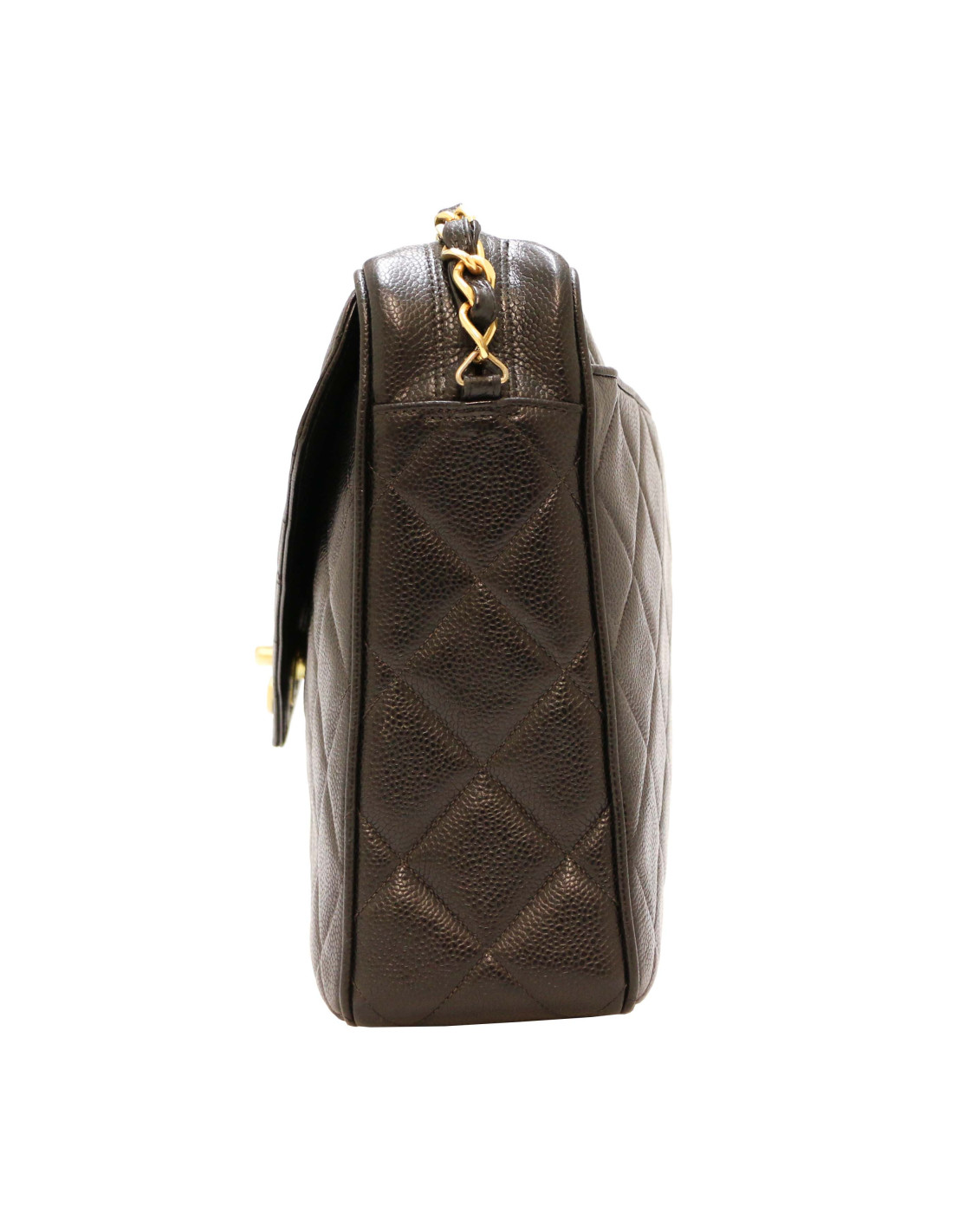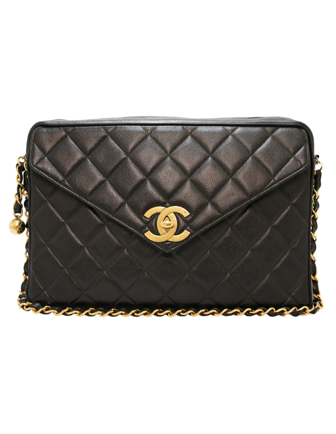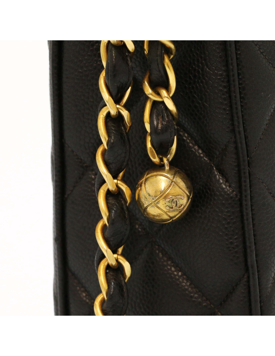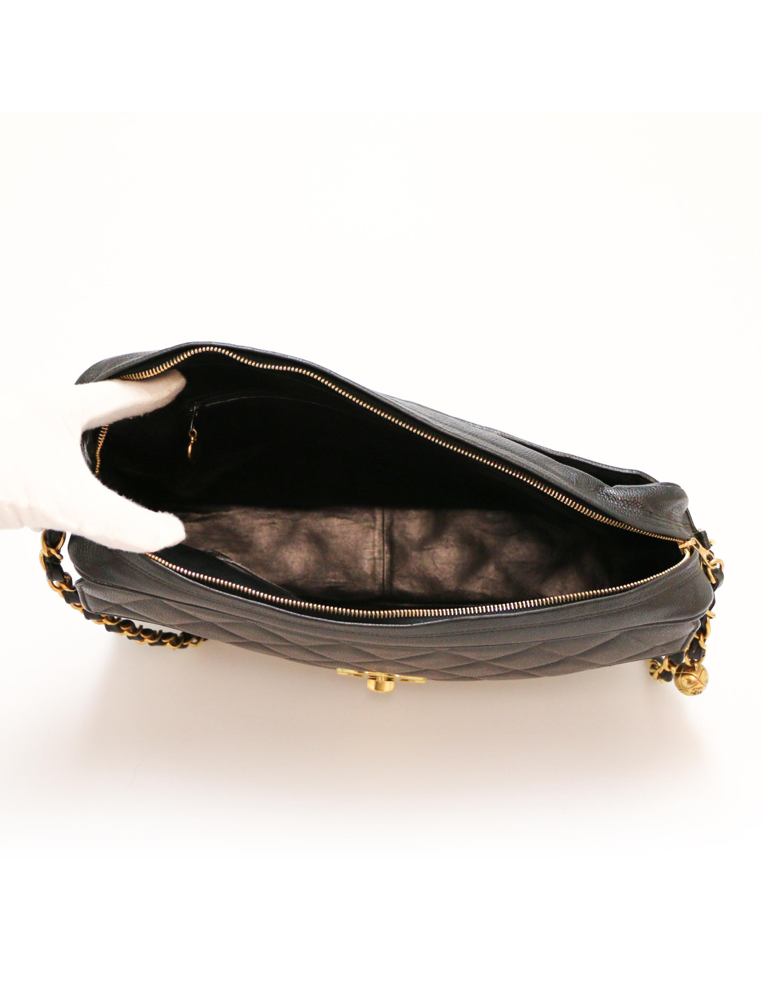 Détails : Vintage, il se porte épaule ou croisé. Fermeture à glissière avec un charm boule matelassé. 1 poche plaquée à l'arrière et 1 à l'avant avec rabat et fermeture fermoir CC.