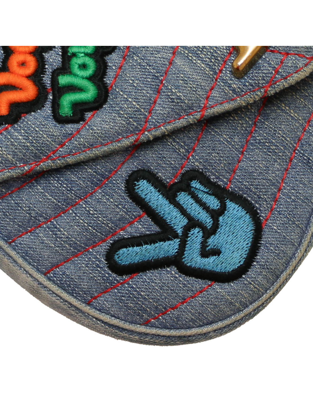 Détails : édition limité de la collection New Wave. Broderie sur la toile denim. Fermoir pression. Il se porte main ou épaule ou croisé. L'anse main est amovible. D'infimes traces sont à peine visibles sur le dessous du sac (voir photo)