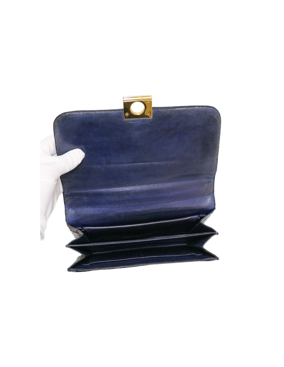 Détails : vintage, ce sac à rabat a 2 soufflets de rangements plus une poche plaquée avant. porte monnaie avec bouton pression. Fermoir à bascule en métal or. Il se porte à l'épaule court ou long. Il a été réparé chez HERMES : fermoir remplacé et SPA.
