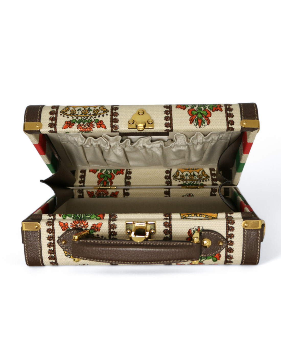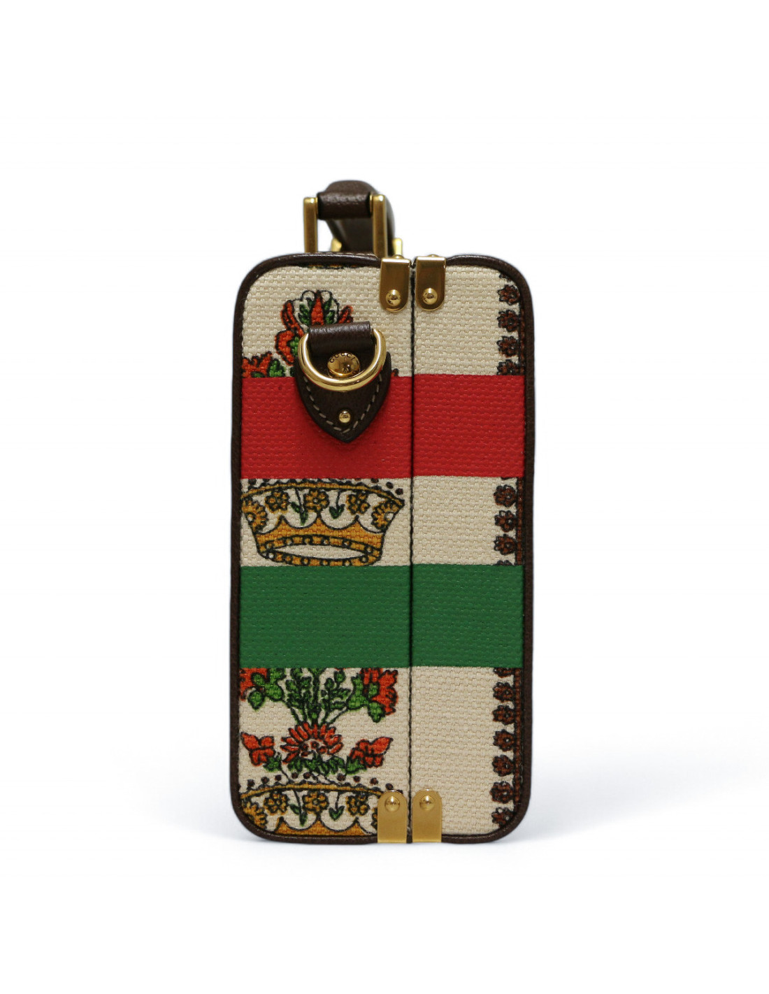Détails : pièce Collector, petite plaque "Gucci Centennial" pour les 100 ans de la Maison GUCCI. Inscription "The R", chanson de Eric B & Rakim de 1988, à l'intérieur de la malle. Deux bandes vertes et rouges sur l'avant de la malle, iconiques de la Maison Gucci.