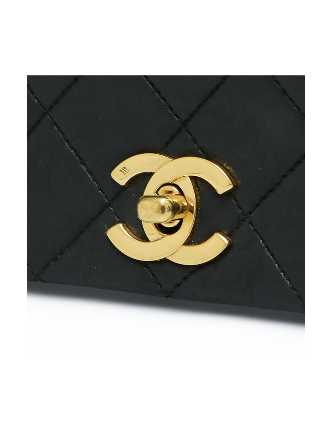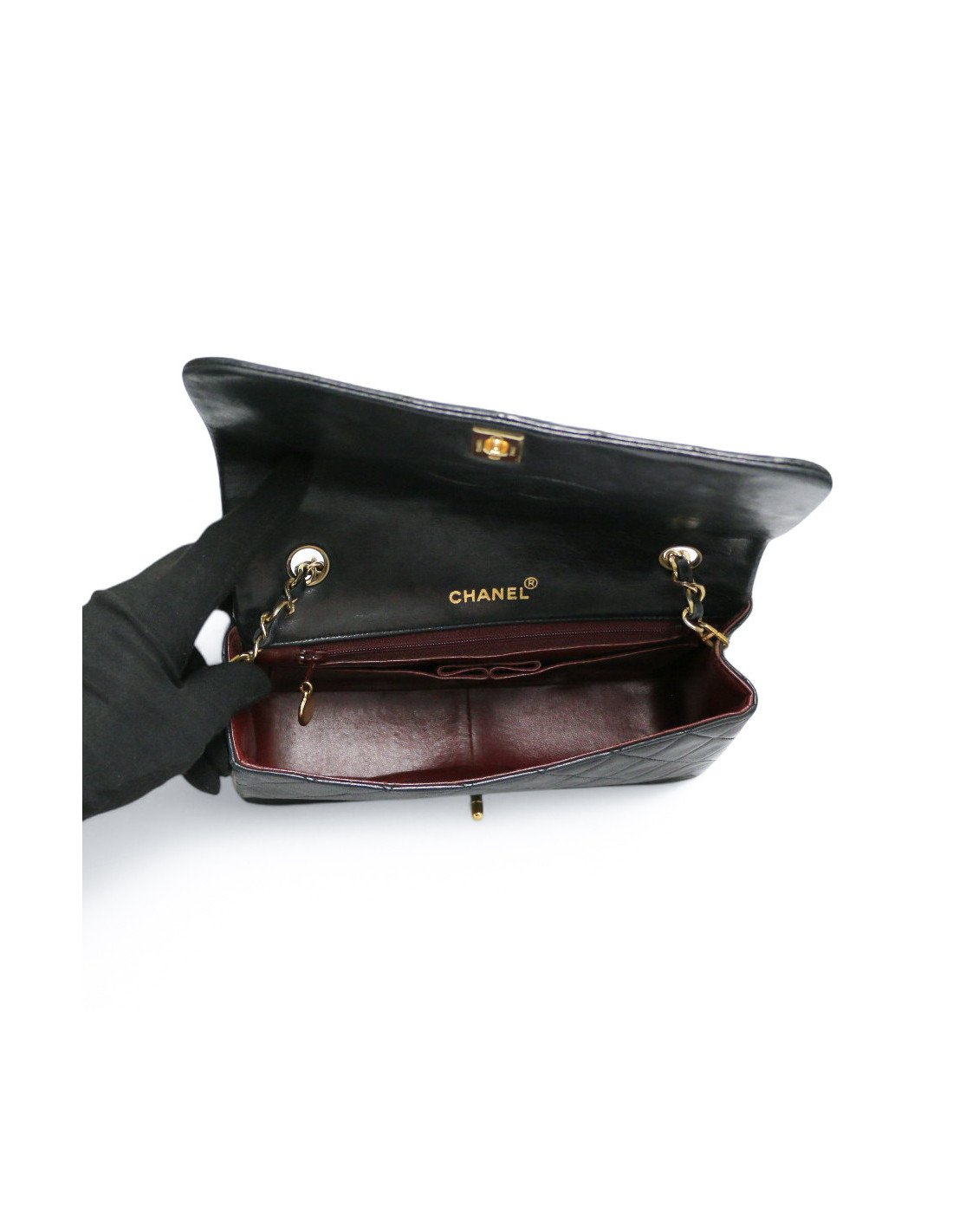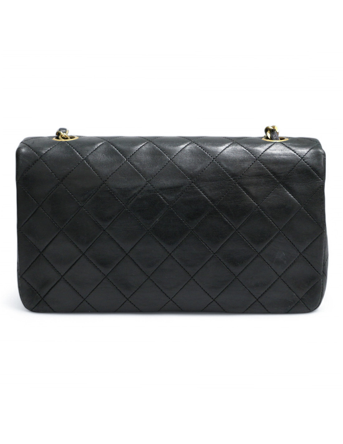 Détails : sac à grand rabat et petit logo CC doré. Une grande poche intérieure et trois petites poches plaquées dont une zippée. Bon état : la dorure est légèrement passée sur la bandoulière, traces d'usure à l'intérieure.