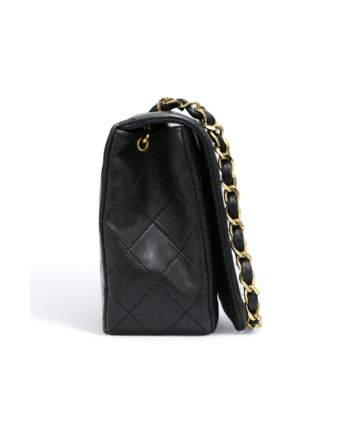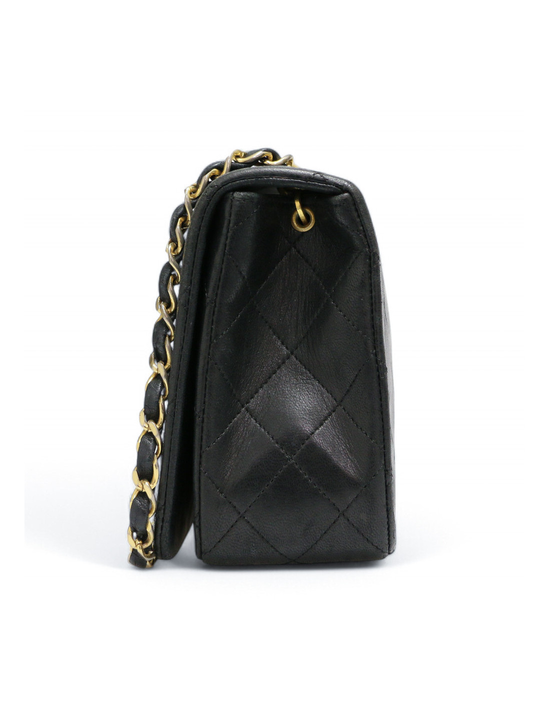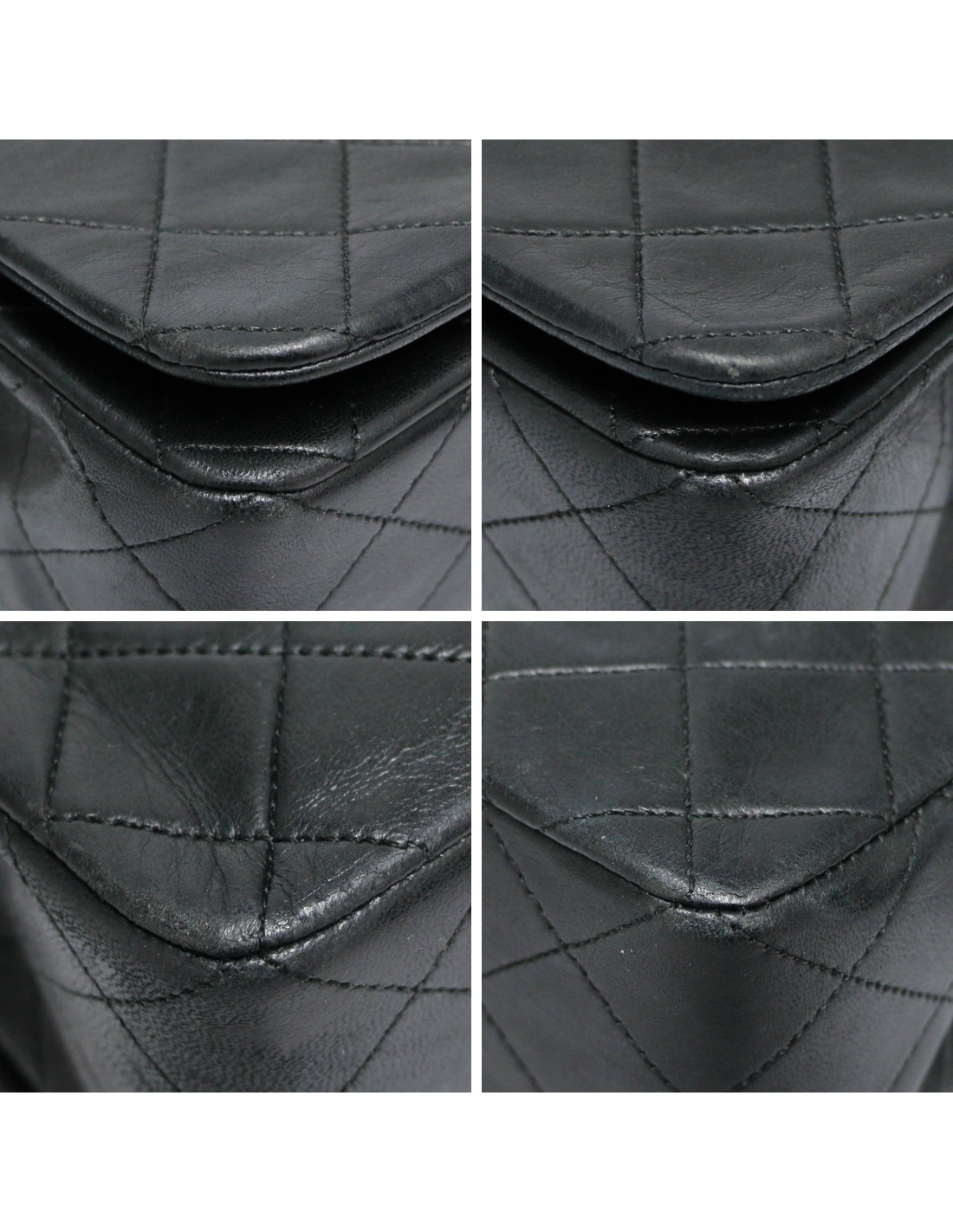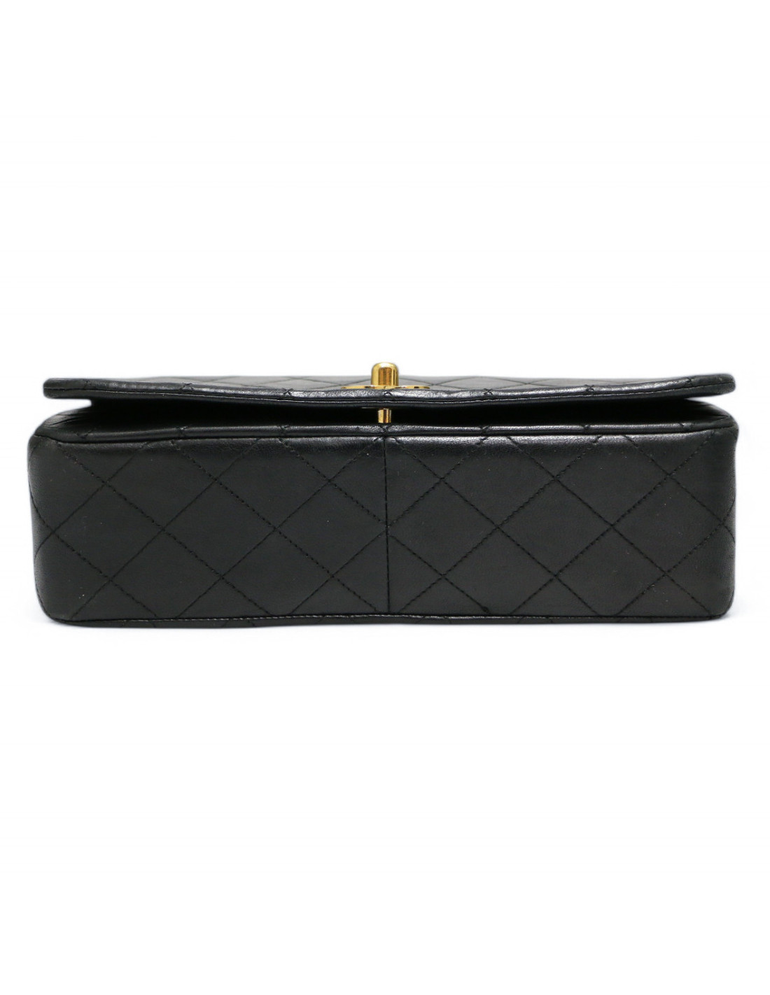 Détails : sac à grand rabat et petit logo CC doré. Une grande poche intérieure et trois petites poches plaquées dont une zippée. Bon état : la dorure est légèrement passée sur la bandoulière, traces d'usure à l'intérieure.