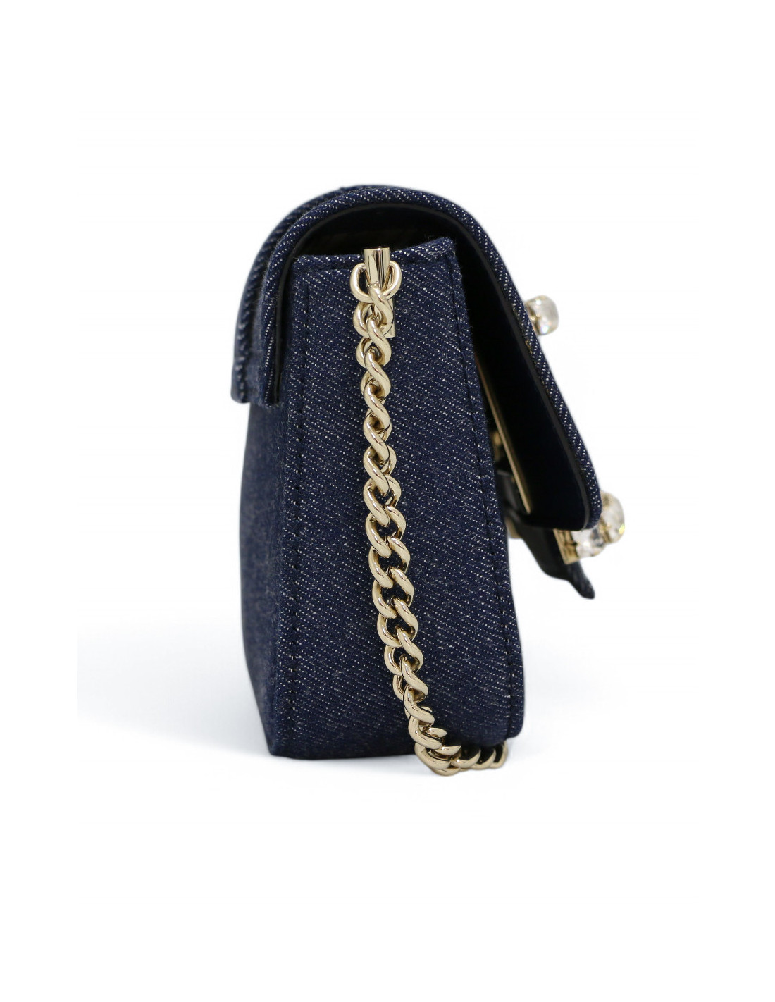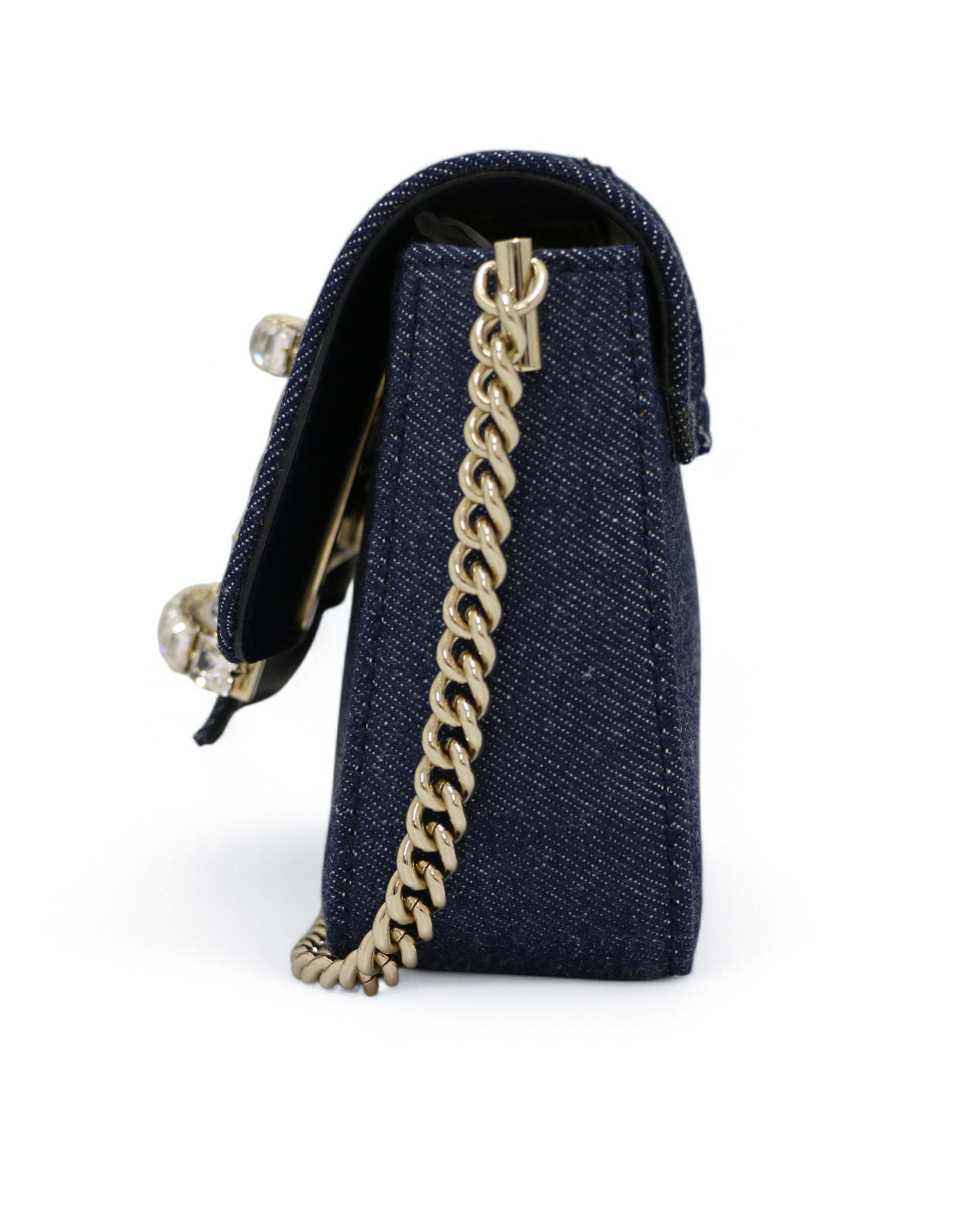 Détails : fermeture par un bouton pression, magnifique fermoir décoratif rectangle incrusté de cristaux transparents.