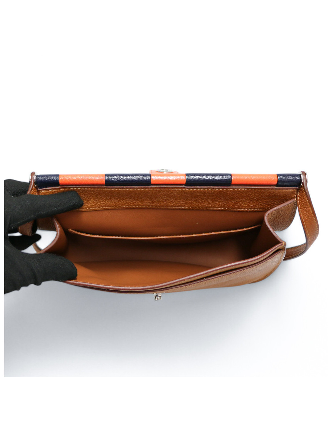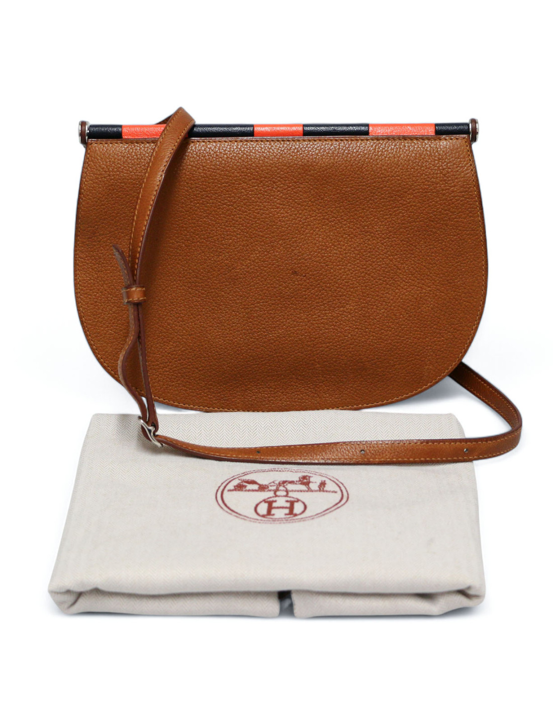 Détails : sac saut : tige de barre de saut bicolore et clous de selle. A l'intérieur, deux grandes poches et une languette de maintien fermée par un bouton pression. Très bon état, des légères traces de stylo