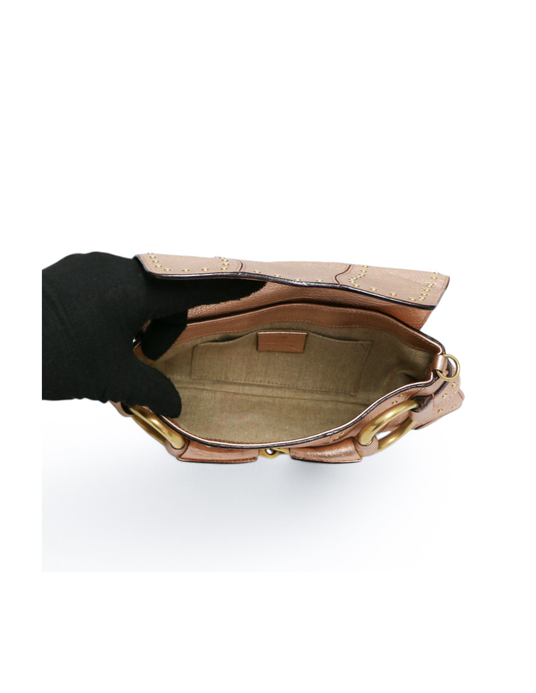 Détails : sac issu de la Collection Gucci x Tom Ford. Grande poche fermée par un rabat et petite poche plaquée intérieure