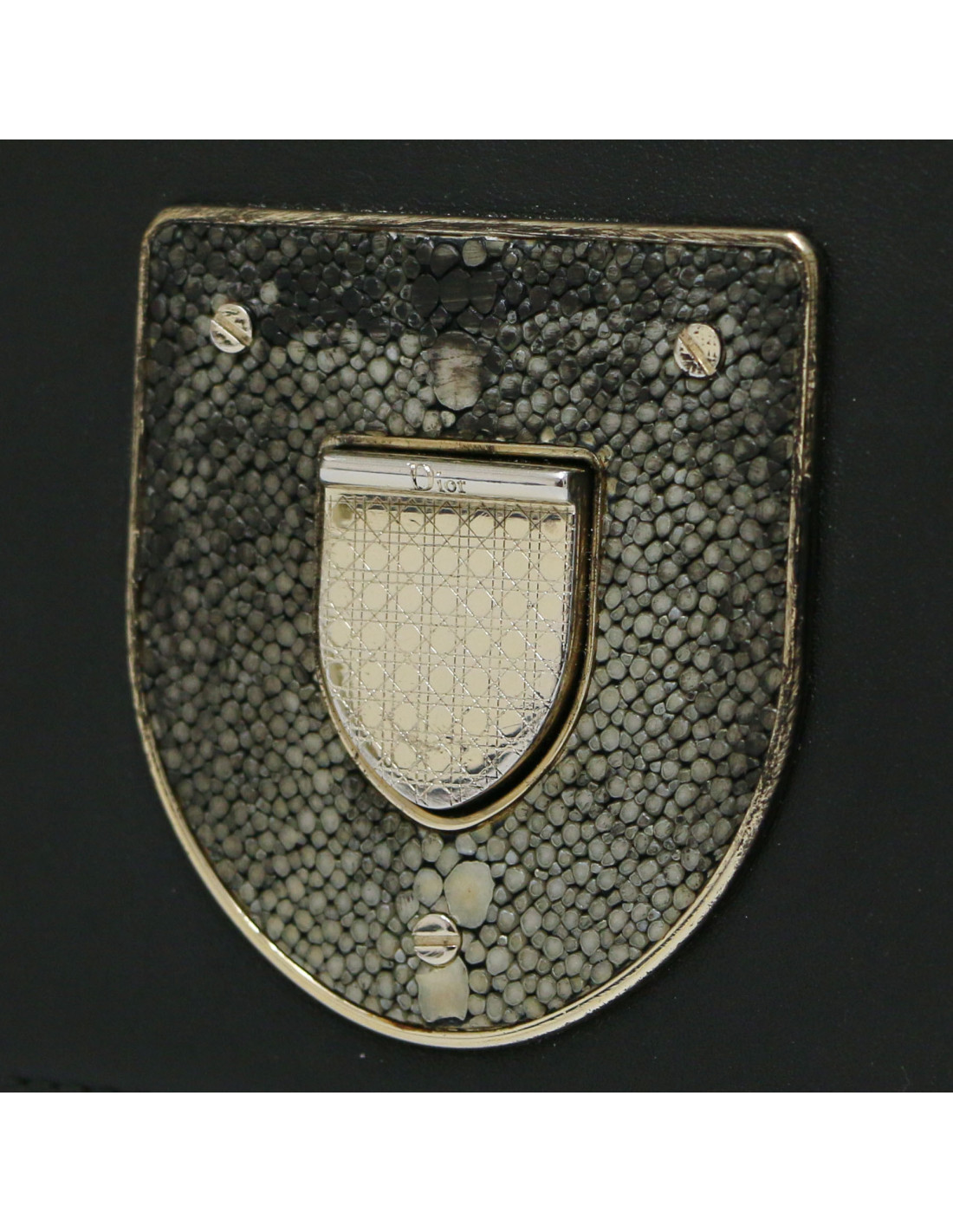 Détails : fermeture aimantée, empiècement en galuchat , peau de raie à l'avant du sac. Bandoulière en métal et cuir.