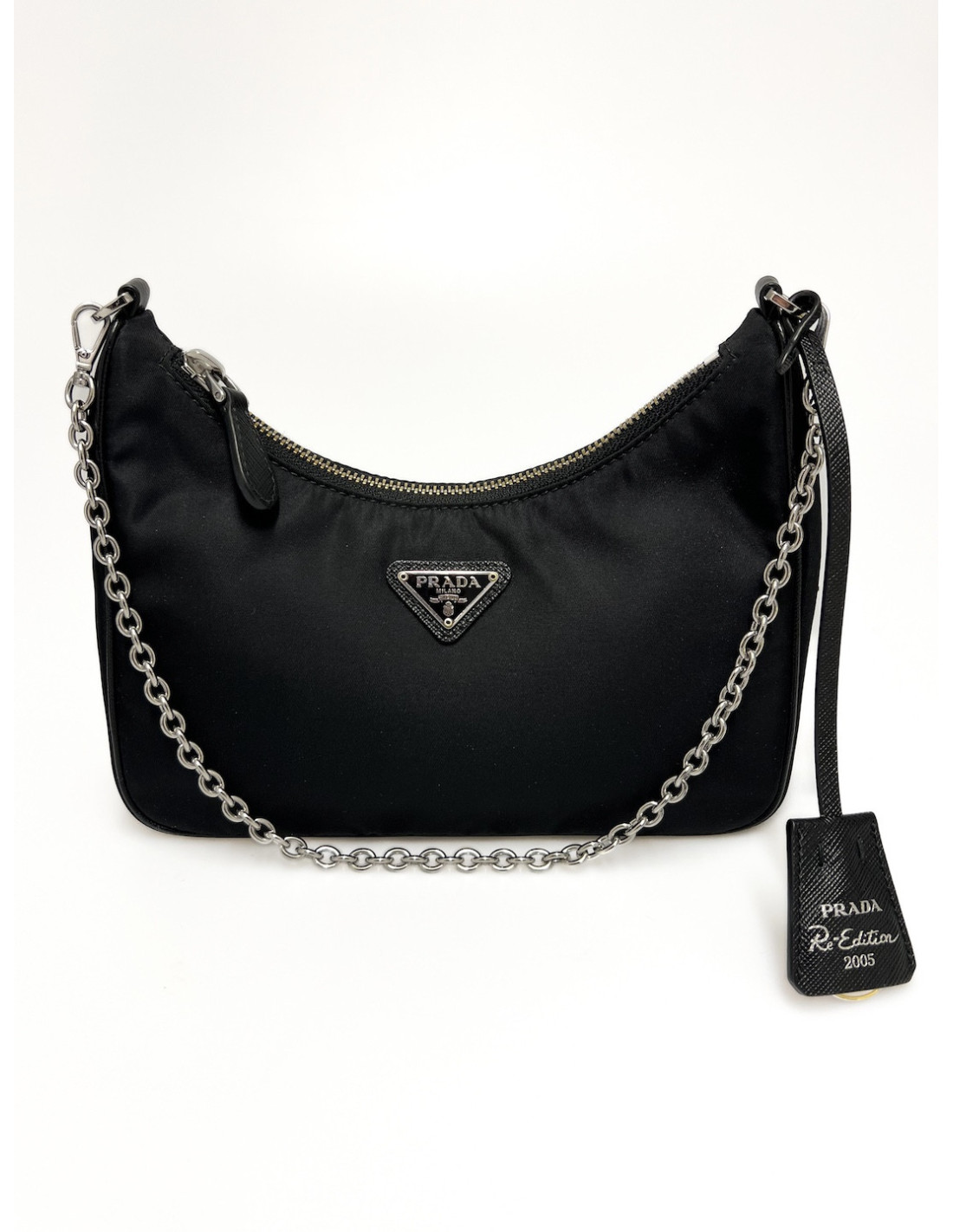 Détails : Sac emblématique de la Maison Prada apparu au début des années 2000, il a connu un retour remarqué sous le nom Re-Edition 2005. Confectionné en nylon et agrémenté de finitions en cuir Saffiano, il se distingue par sa pochette amovible fixée sur la bandoulière noire. Le sac a deux deux bandoulières amovibles : l'une en nylon noir, ajustable, et l'autre en métal. On retrouve également une tirette et clochette portant l'inscription "Prada Re-Edition 2005". Le sac est en excellent état, sans trace d'usure extérieure. A l'intérieure un unique espace de rangement. Il peut se porter aussi bien à l'épaule qu'en bandoulière pour un style décontracté