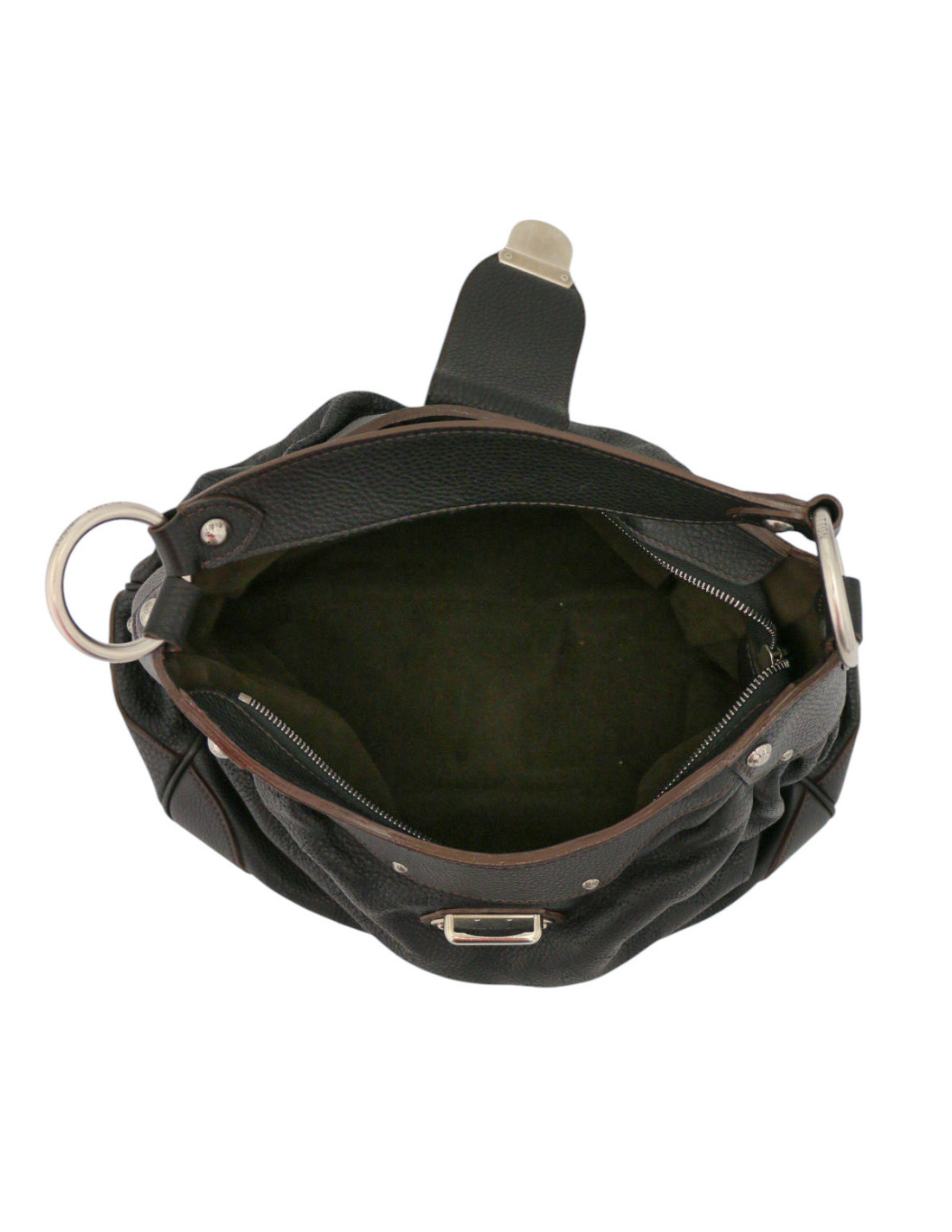 Détails : porté épaule, fermeture à glissière. surpiqures marron.