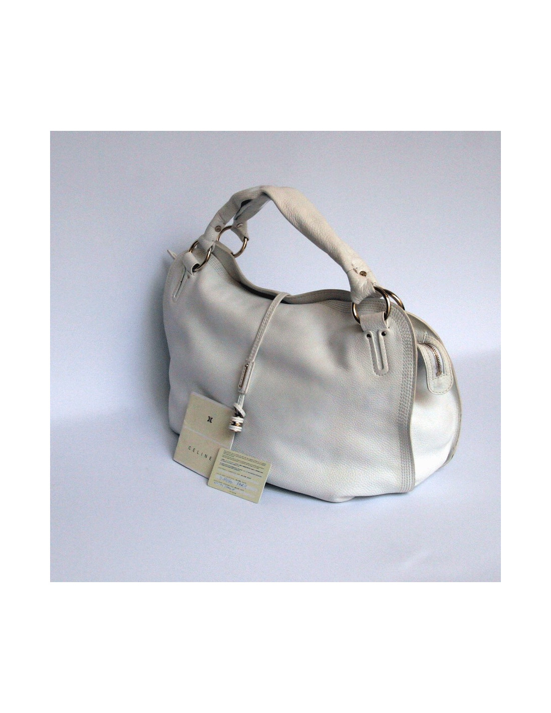 Idéal pour l'été, ce sac cabas blanc CELINE est en cuir grainé blanc. La bijouterie est en métal doré. L'intérieur est en tissu marron chocolat monogrammé. Il y a une grande poche zippée, une poche pression, un emplacement pour les clés, deux poches pour smartphone et enfin deux petites poches latérales. Il se ferme à l'aide d 'un zip doré. Il est en parfait état. Il se porte à la main ou à l'épaule.
