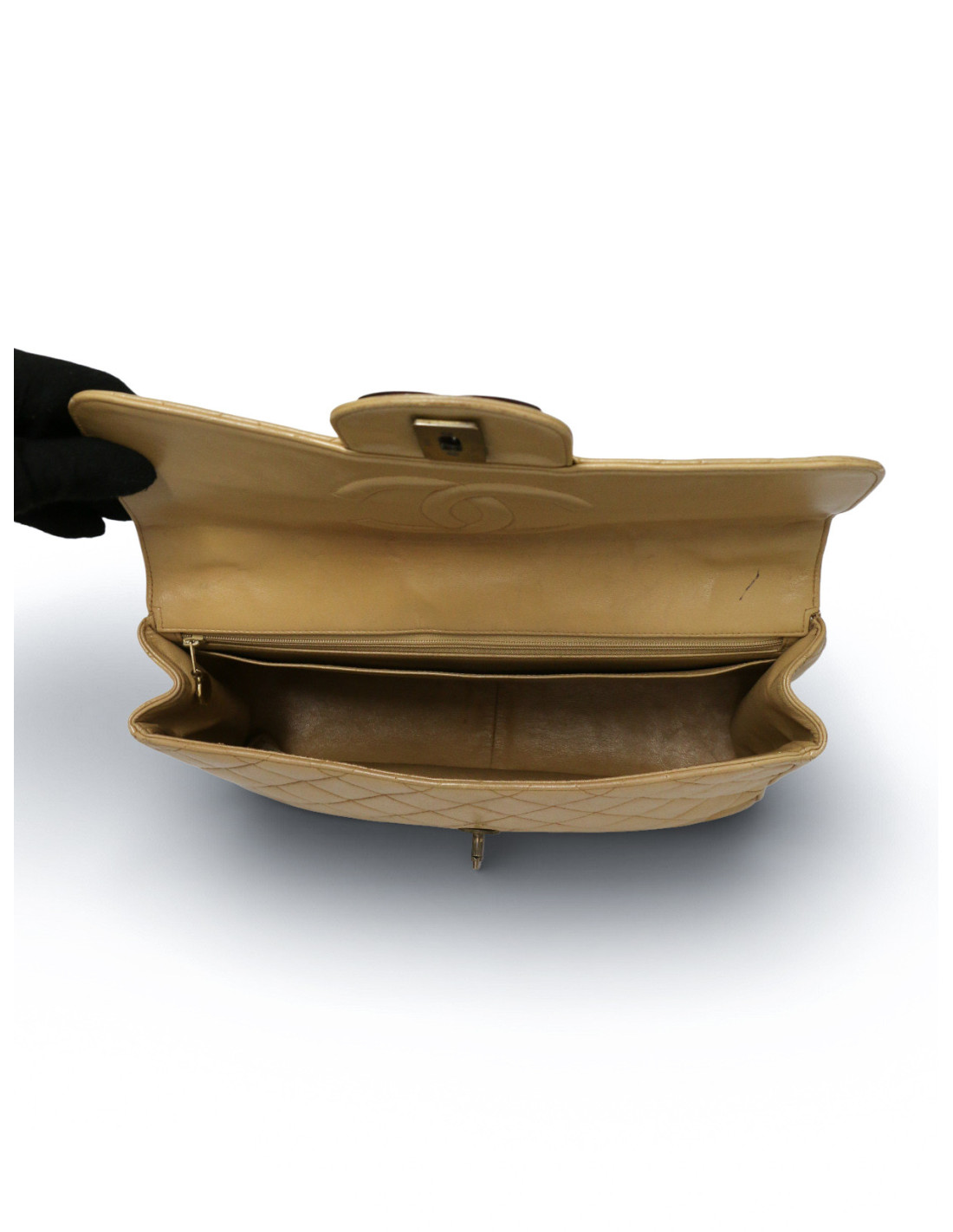 Sac rabat Chanel bandoulière beige vintage