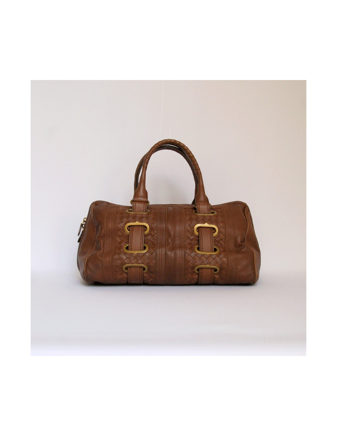 Sublime sac BOTTEGA VENETA en cuir marron, partie tressé et cuir lisse. L'intérieur est en peau retournée marron avec une grande poche zippée. Il a deux anses de 43 cm. Il peut se porter à la main et à l'épaule. Il est en très bon état.