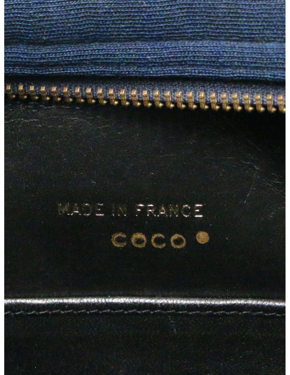 Détails : Sac Coco Chanel vintage en jersey bleu, confectionné en France. Ce modèle élégant associe le jersey bleu au metal doré avec un intérieur en cuir d’agneau noir pour une belle finition. Doté de deux bandoulières de 99 cm, il se porte confortablement à l’épaule. Sa bijouterie dorée apporte une touche lumineuse et intemporelle.
