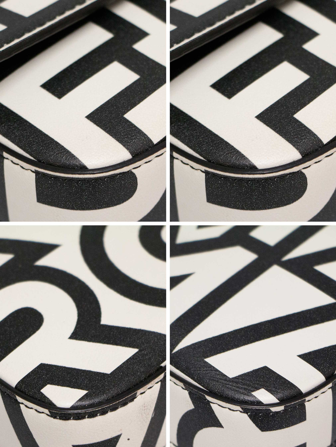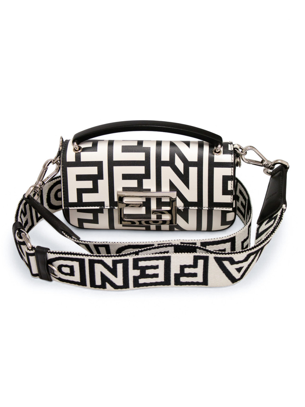 Sac mini Baguette Fendi, modèle iconique des années 2000–2010, inspiré de l’esthétique audacieuse de cette période emblématique de la mode. Ce sac bandoulière en cuir de qualité est sublimé par le célèbre monogramme FF noir et blanc, offrant un style graphique, intemporel et immédiatement reconnaissable.Ce sac mini Baguette Fendi se distingue par sa grande polyvalence. Il peut être porté à la main grâce à sa poignée supérieure, ou à l’épaule et en crossbody avec sa large bandoulière en toile, amovible et ajustable, siglée FENDI ROMA. Conçue pour un confort optimal, la bandoulière mesure environ 4 cm de largeur pour une longueur maximale de 137 cm. Les finitions métalliques argentées et le fermoir FF signature renforcent l’élégance de ce modèle tout en affirmant son identité emblématique. Compact et pratique, ce sac mesure 18 x 10,5 x 2,5 cm, idéal pour transporter vos essentiels avec style, aussi bien en journée qu’en soirée. Ce sac mini Baguette Fendi est en excellent état, sans marques d’usure, ce qui est particulièrement rare pour une pièce de cette époque. Soigneusement conservé, il a su préserver tout son charme d’origine. Très recherché, ce sac incarne parfaitement l’esprit des années 2000. Il constitue une pièce de collection incontournable pour les amateurs de mode vintage et les passionnés de pièces iconiques.