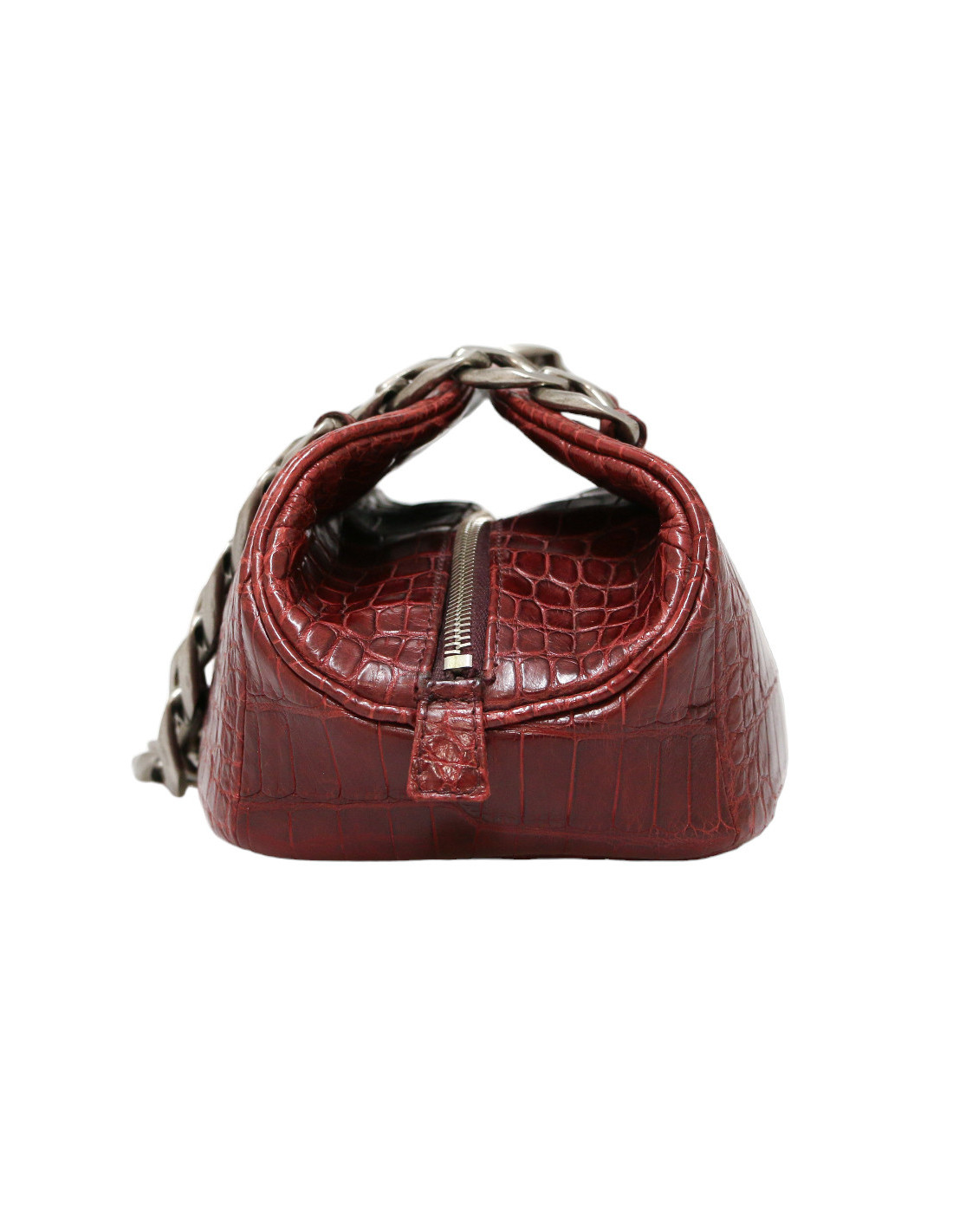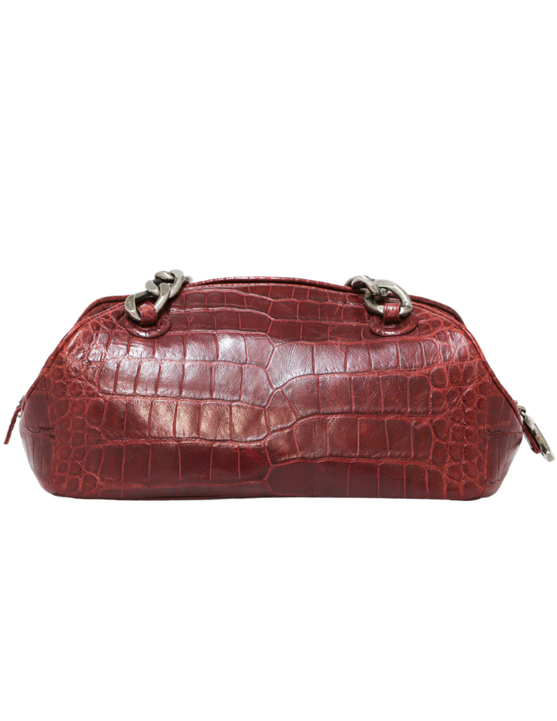 Sac Bowling Chanel Paris-New York Vintage en Crocodile Bordeaux avec Chaîne Ruthénium
