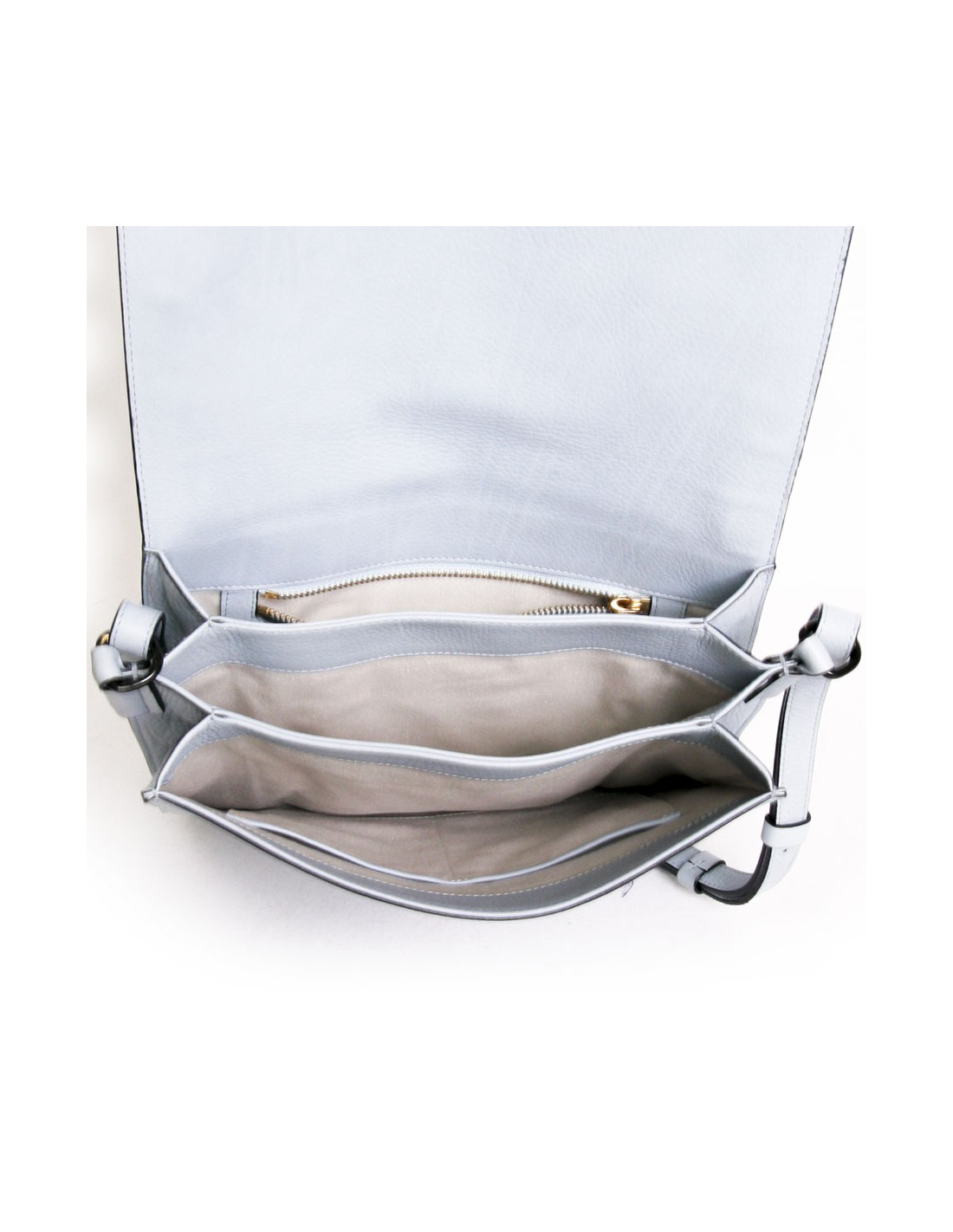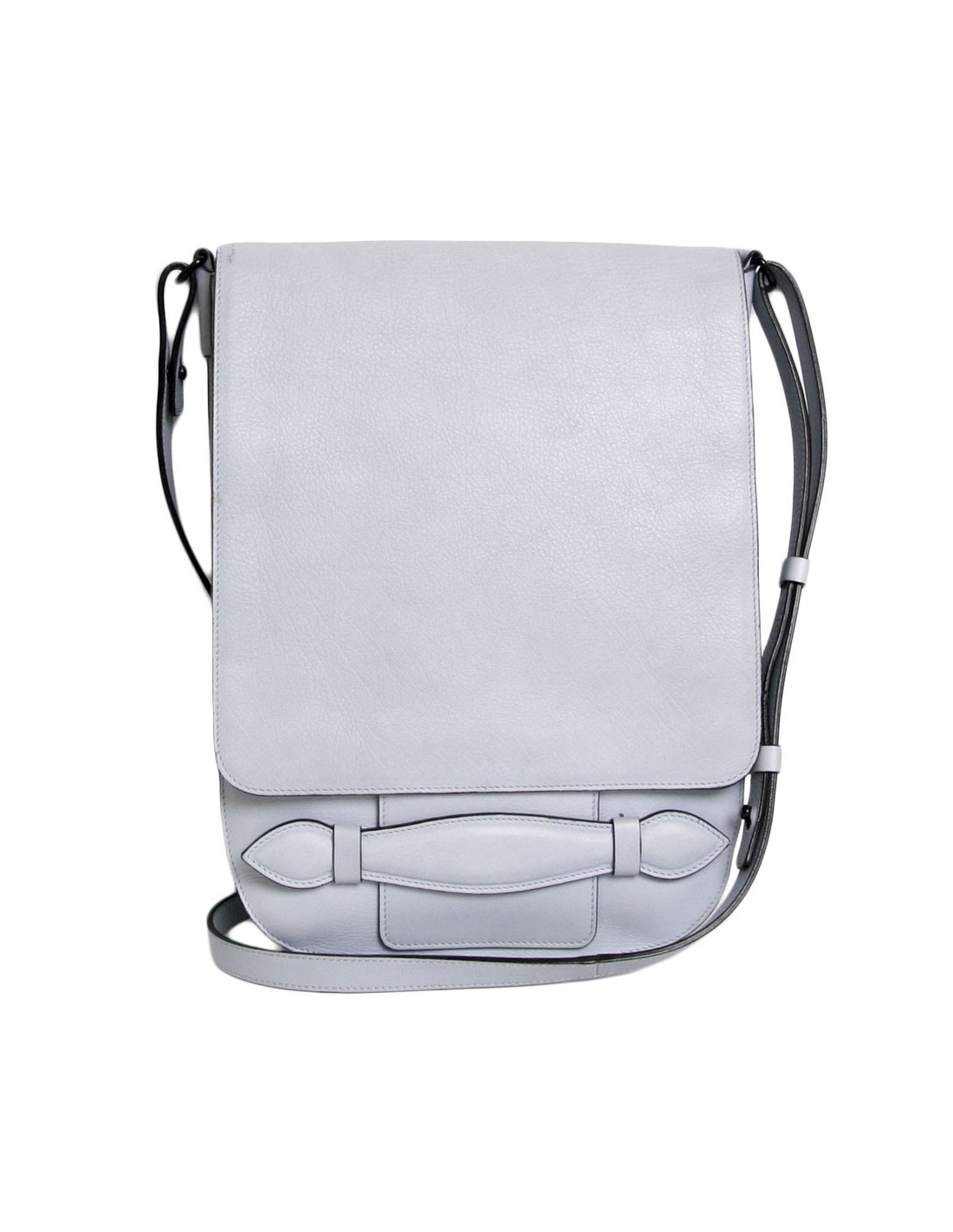 Très jolie besace en veau grainé, teintée bleu ciel