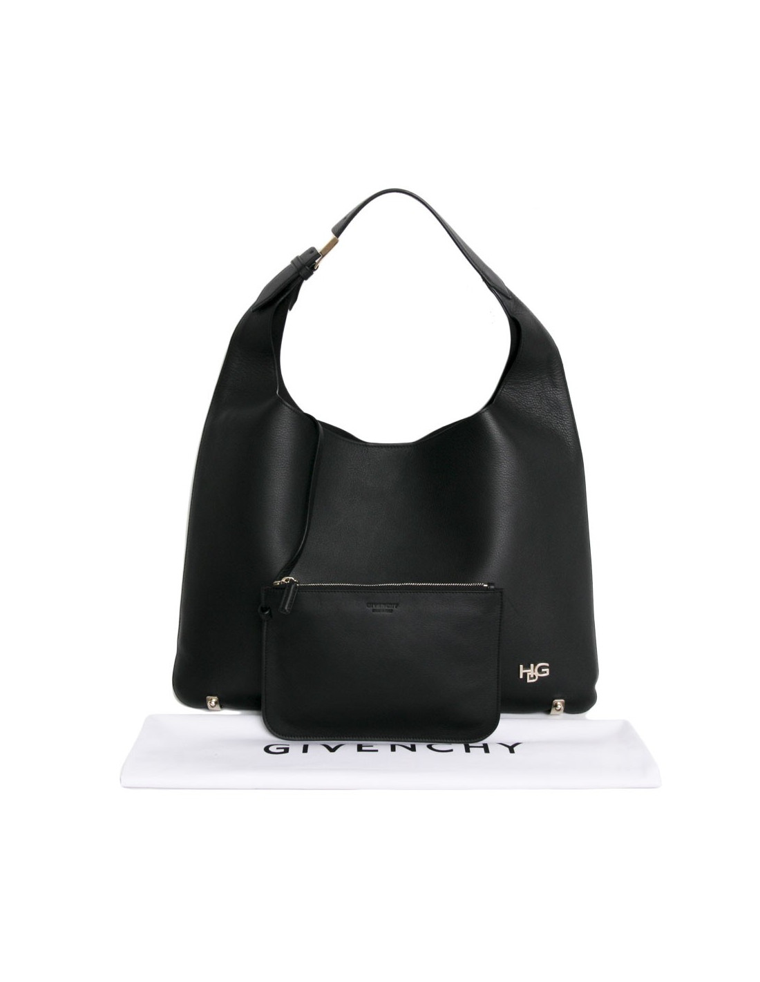 Sac Hobo, logo HDG par Givenchy en cuir légèrement grainé, avec sa pochette amovible. Collection 2014. Bijouterie en laiton doré. Porté épaule.