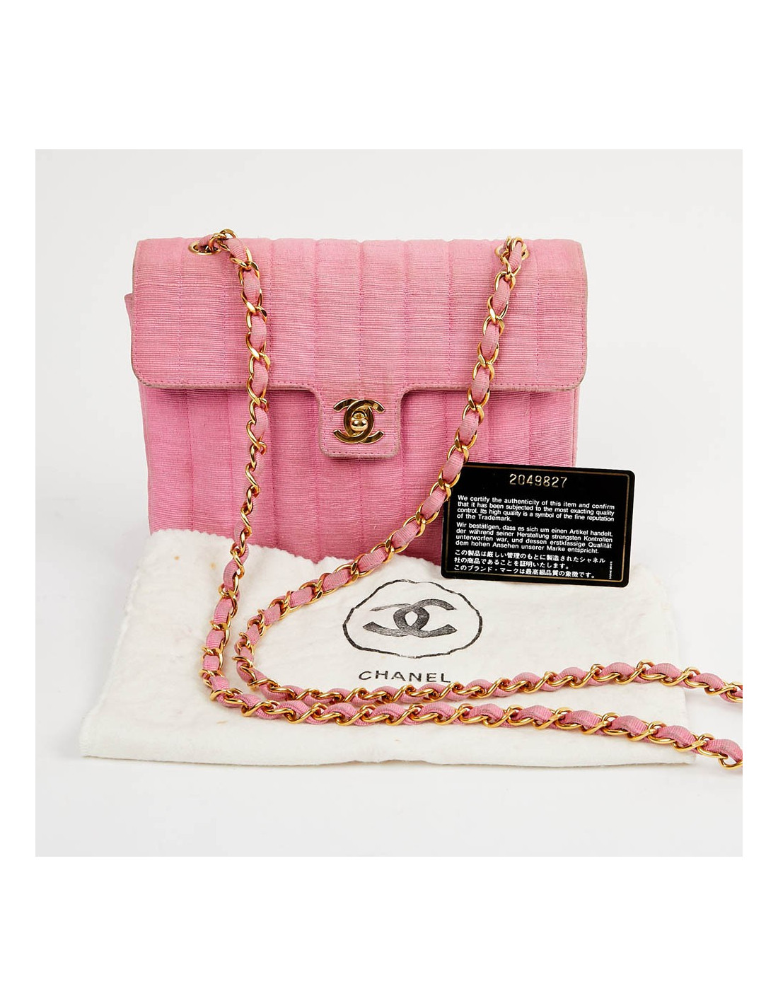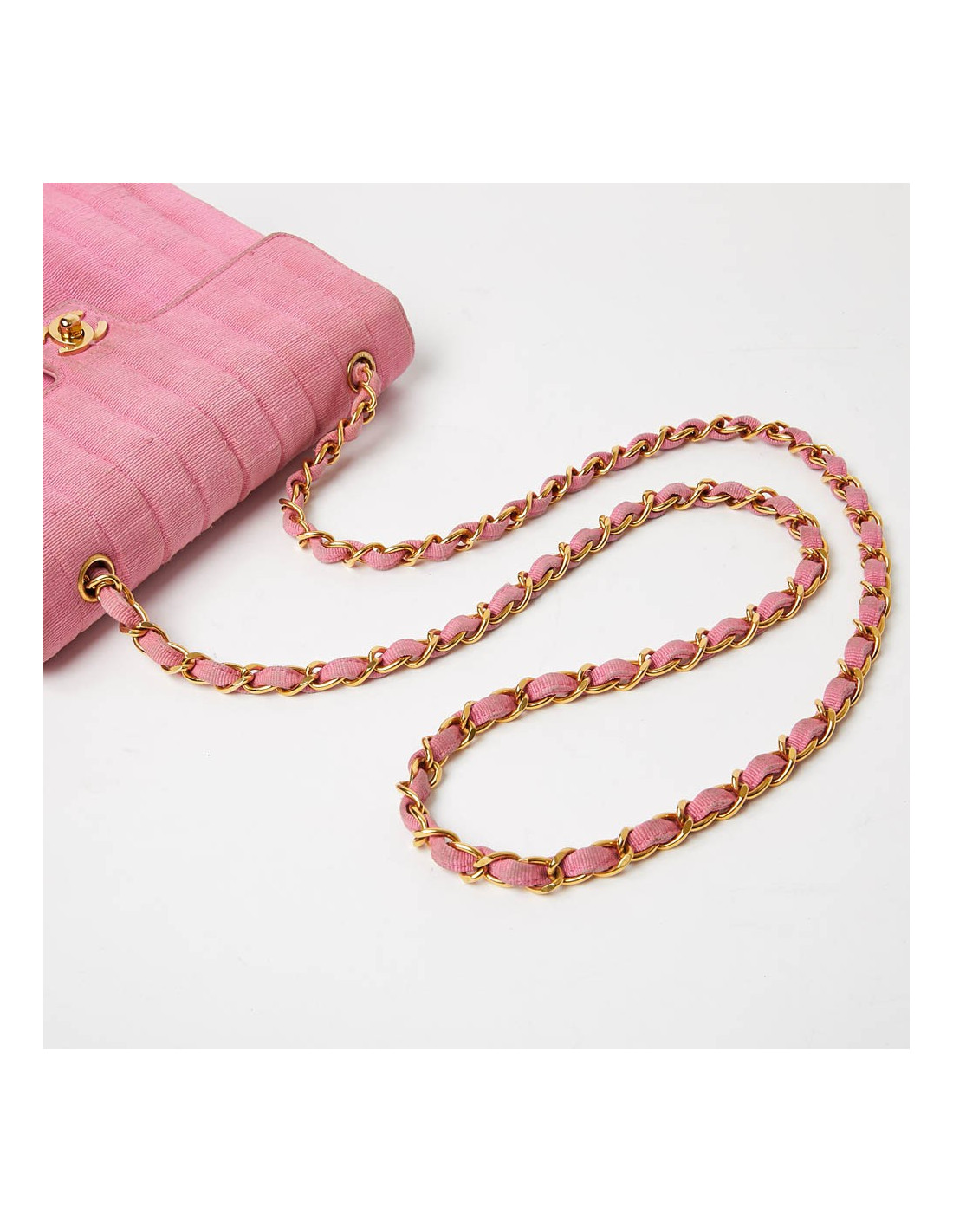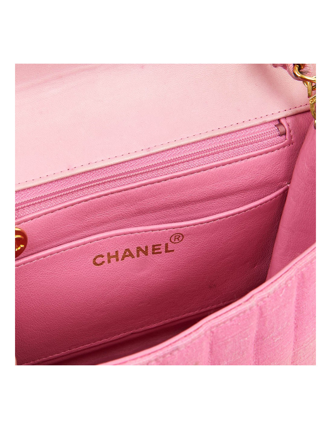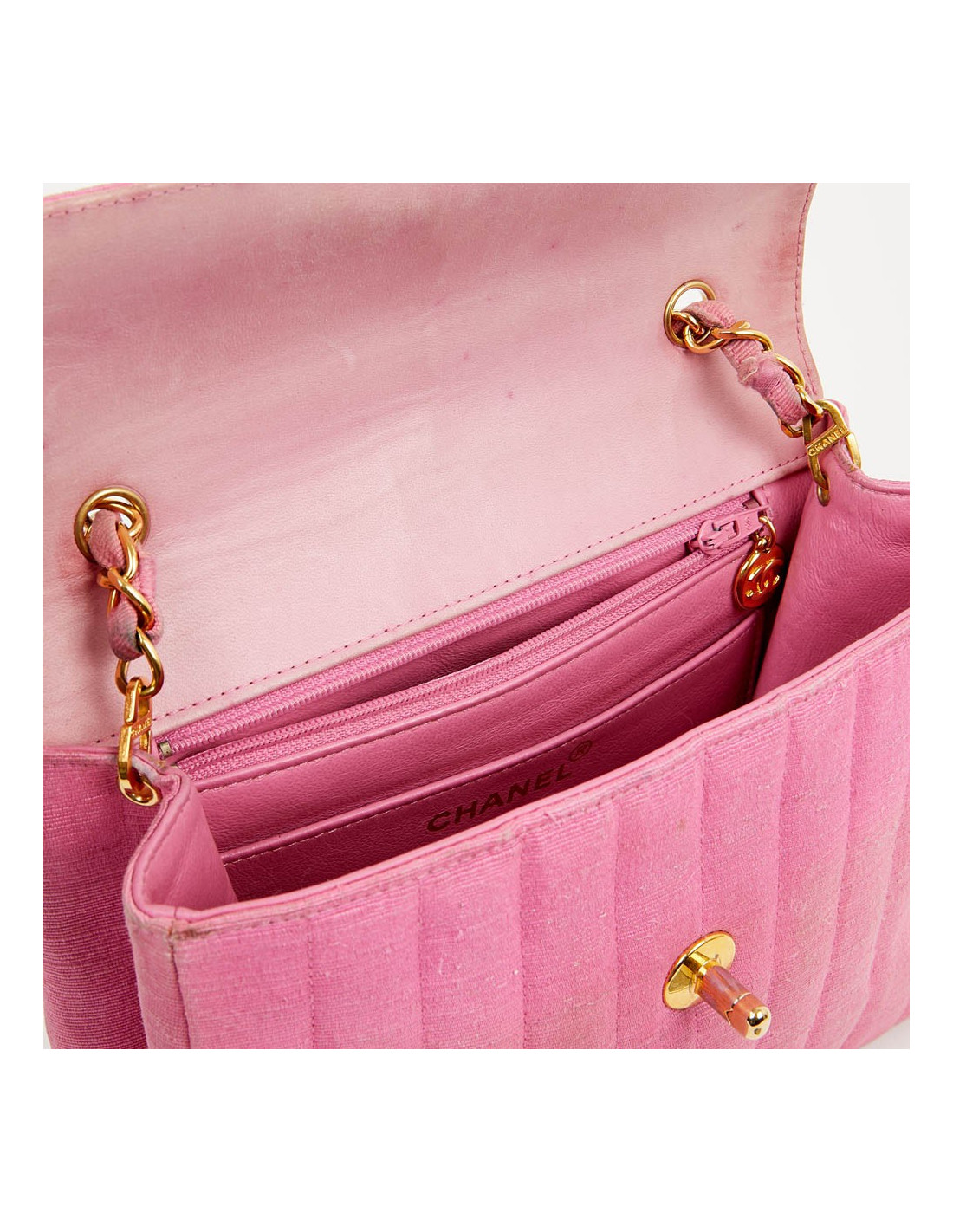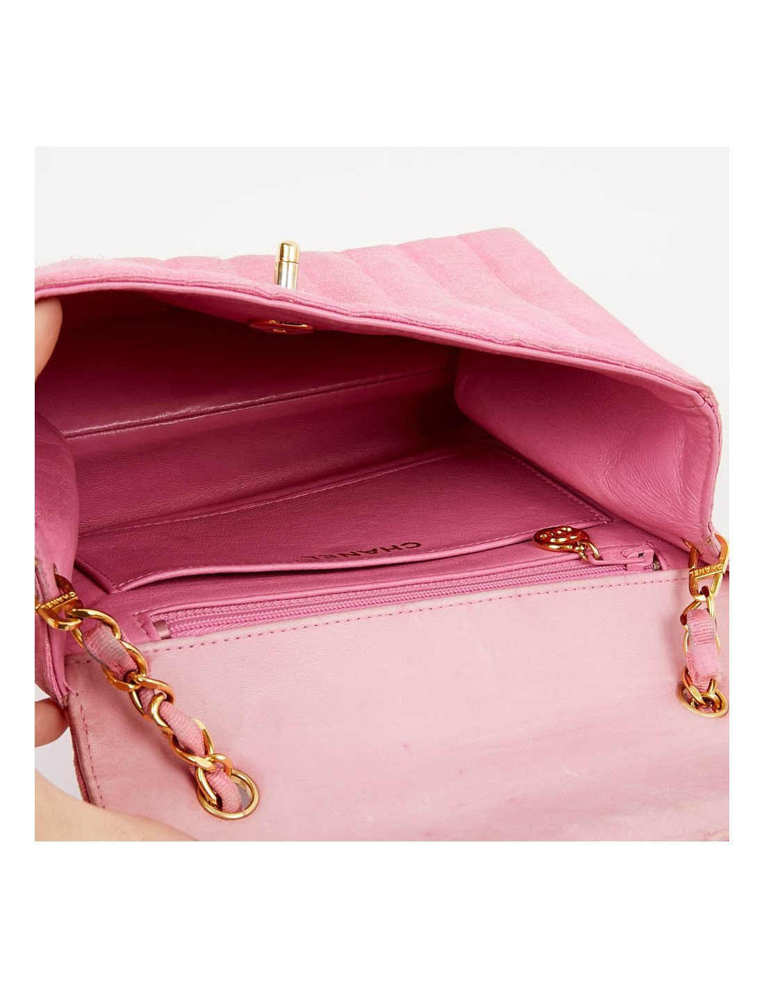 Sac rose CHANEL années 90, en détail