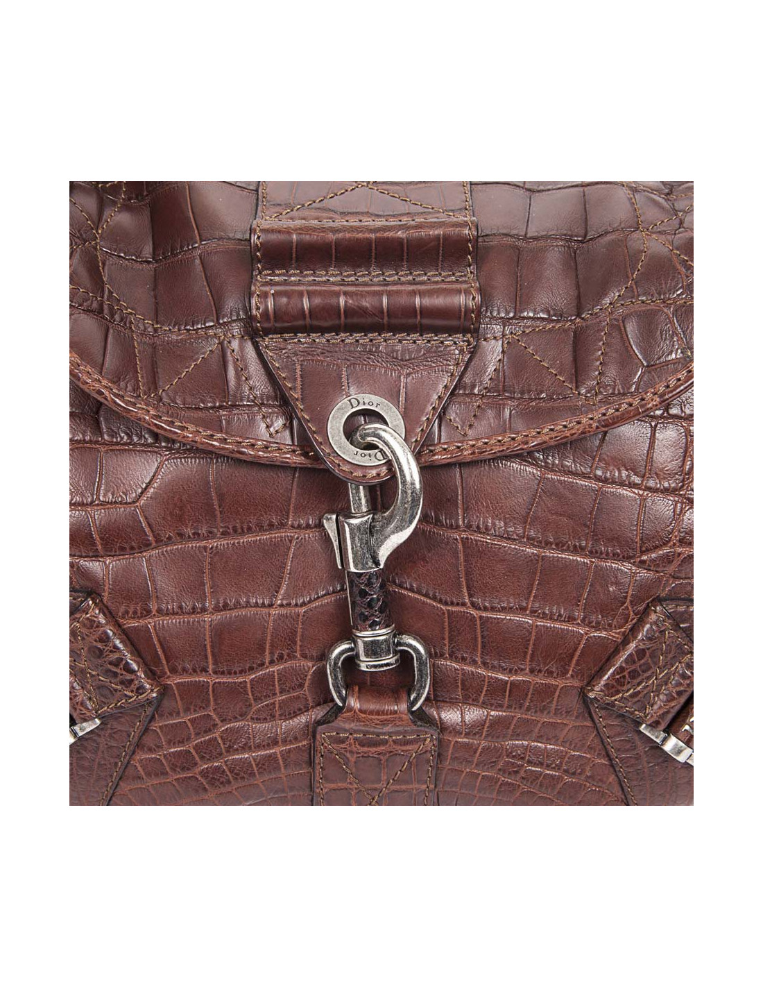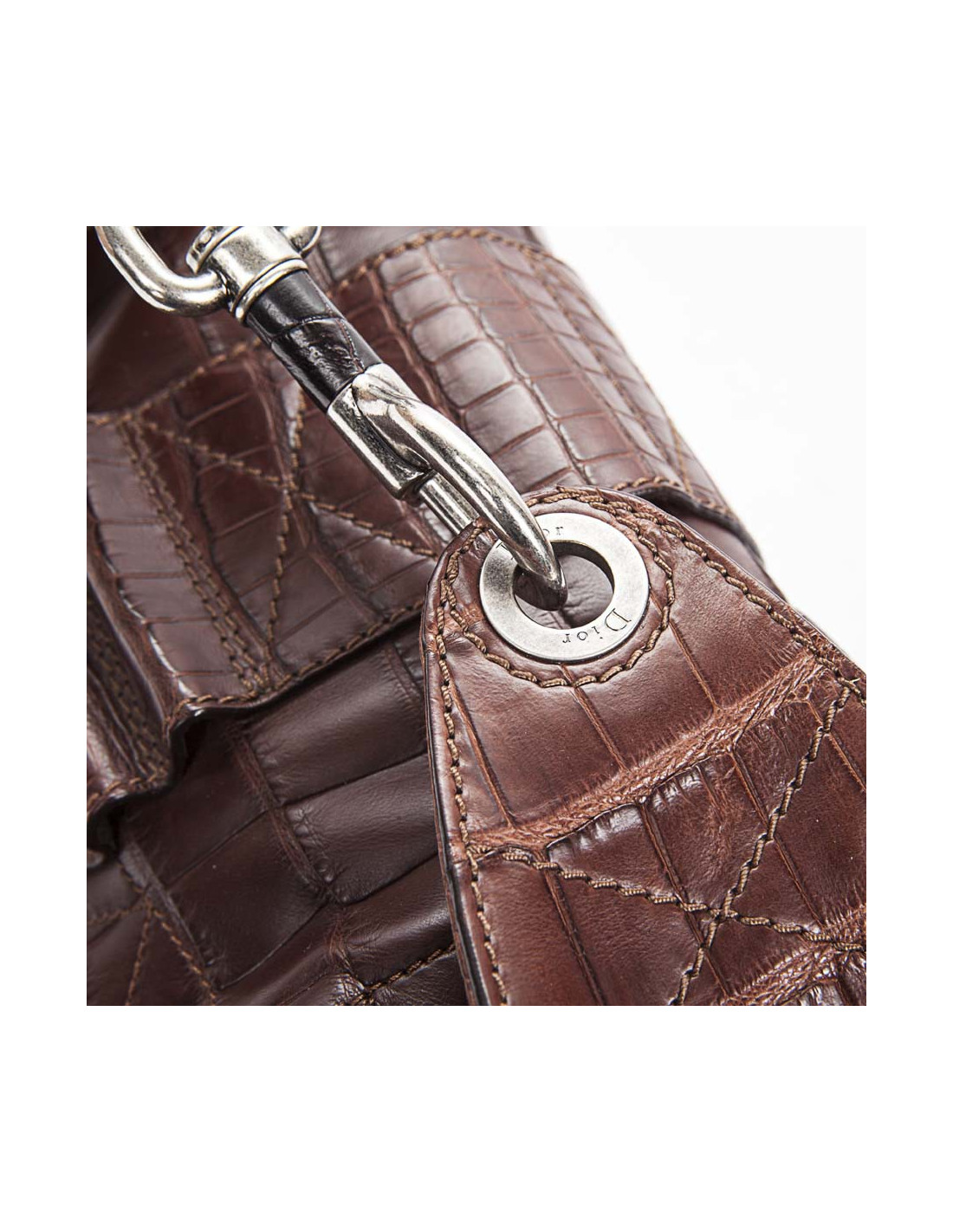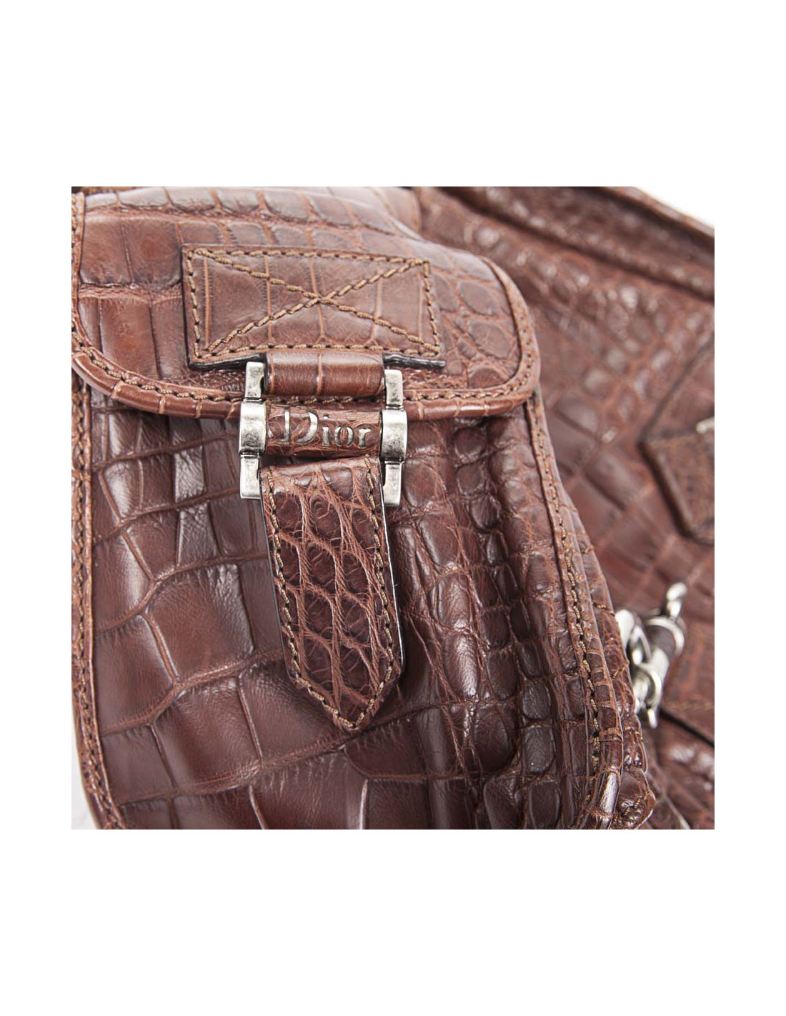 Sac besace de la Maison Dior en crocodile mat de couleur tabac. La bijouterie est en métal argenté vieilli.