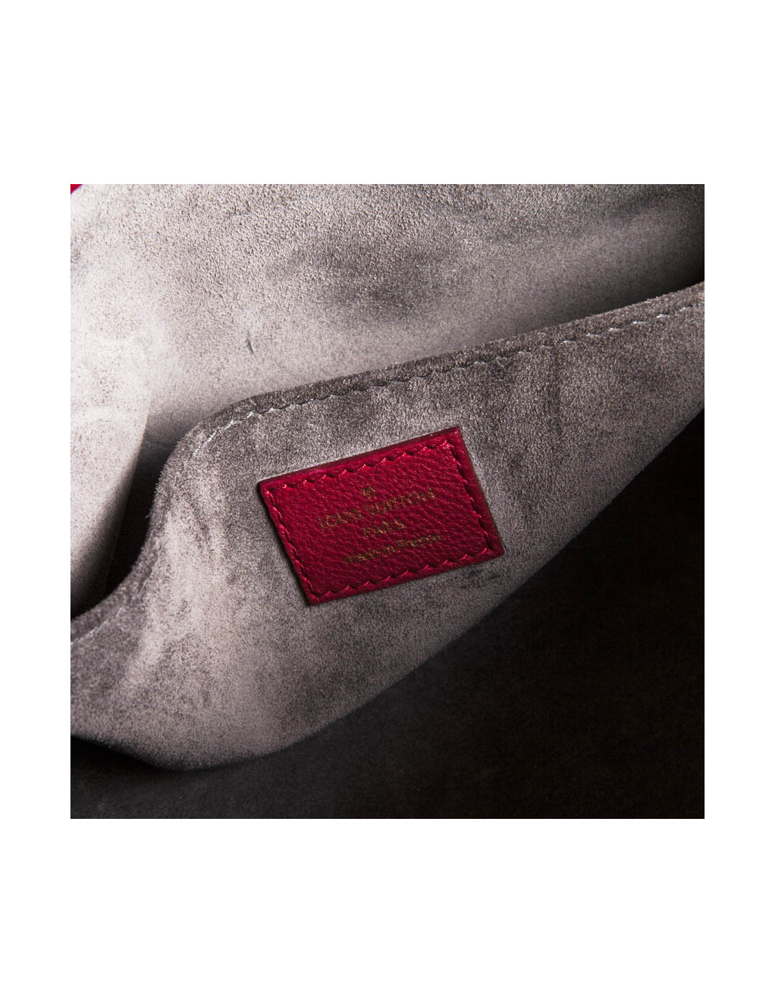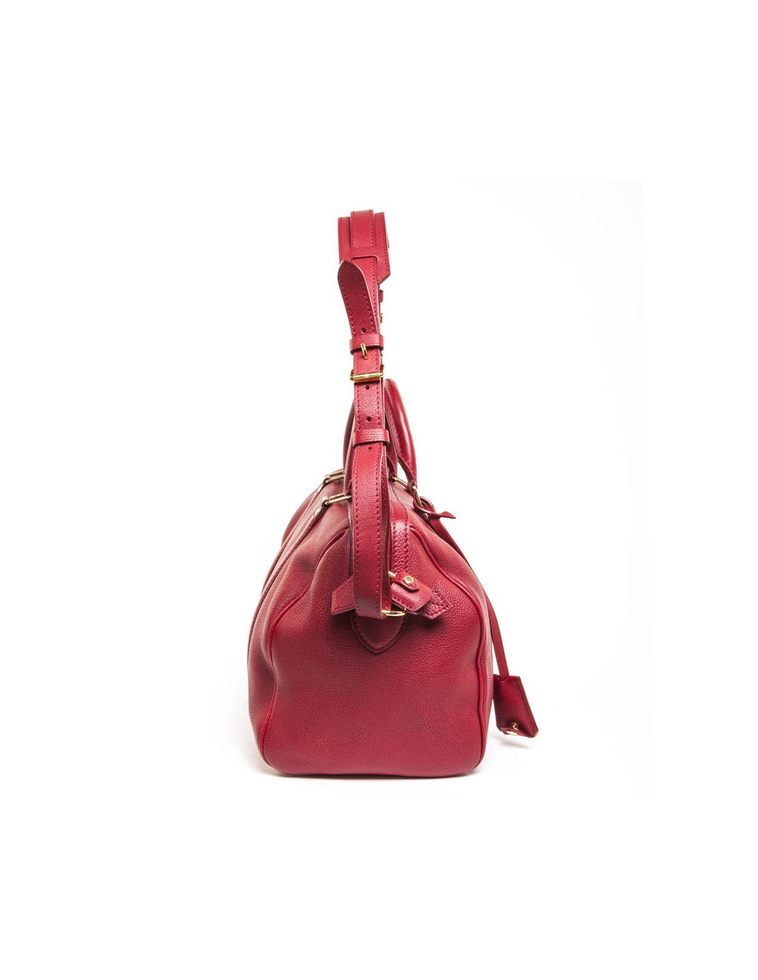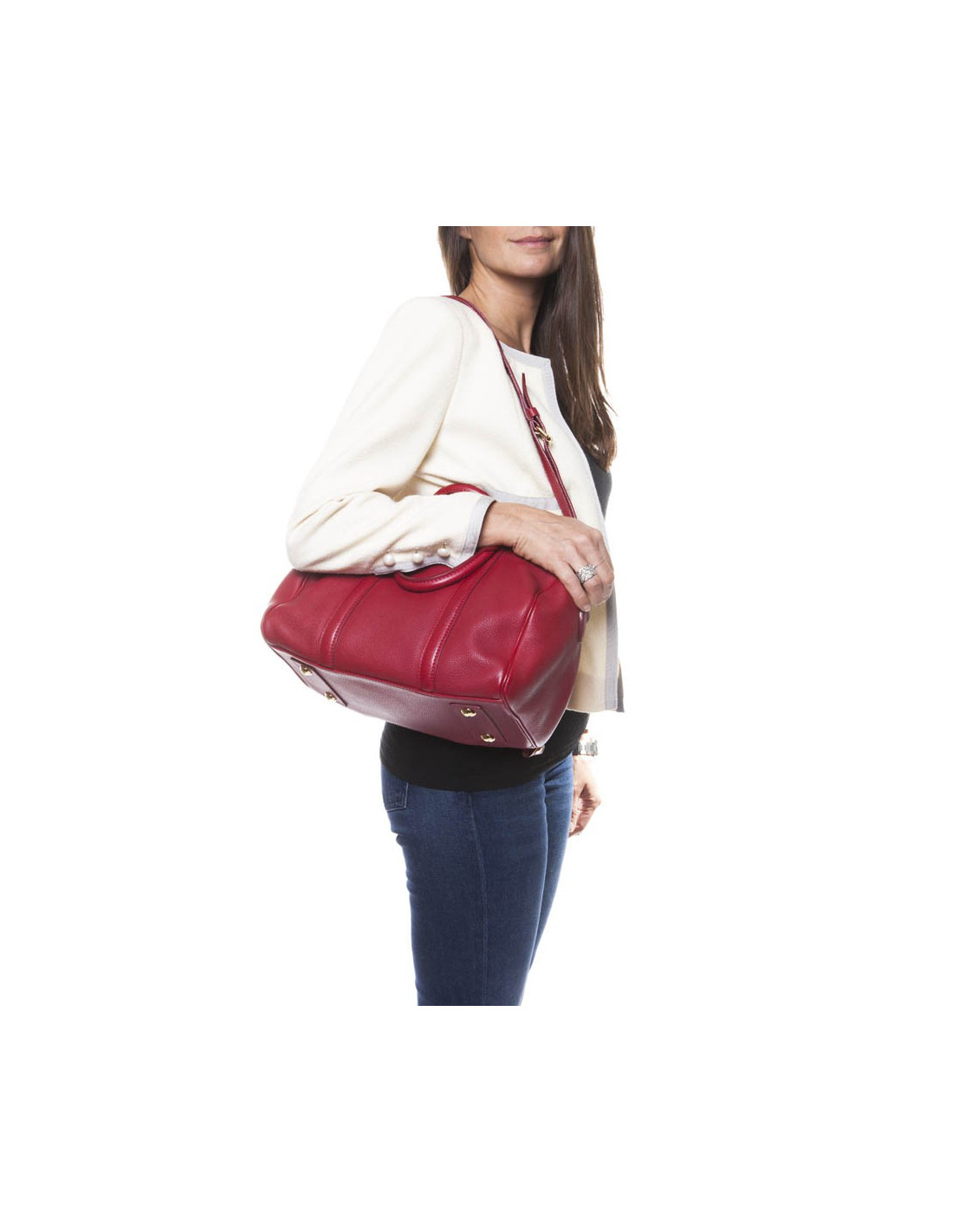 Sofia Coppola a imaginé en 2009, ce modèle, pour la Maison Louis Vuitton, ici nous retrouvons ce magnifique sac dans sa version cuir de veau grainé souple rouge cerise. Il est doublé en cuir de veau velours gris avec une grande poche plaquée intérieure et poches zippées. Deux petites poignées Toron en cuir. La bandoulière est amovible avec une patte d'épaule. Porté main et épaule. Il vous sera livré avec clochette et clés. Double fermeture à glissière avec cadenas recouvert de cuir. Il est en très bon état.