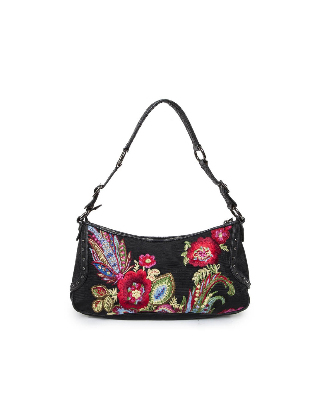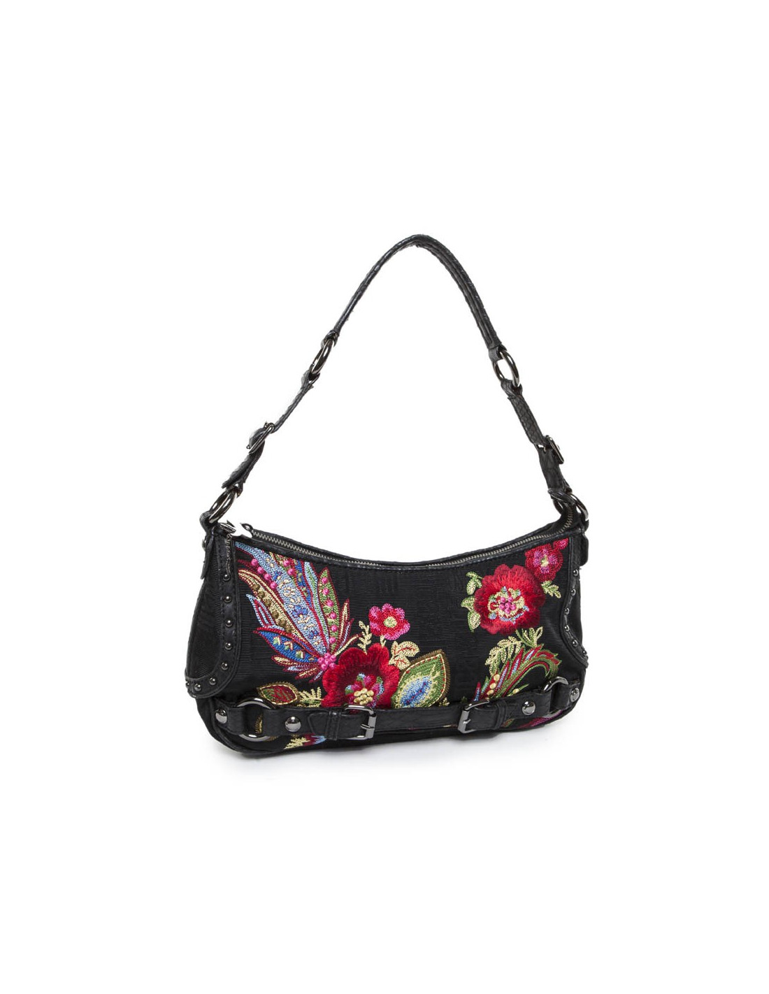 Sac Just CAVALLI cuir et toile broderies fleurs multicolores