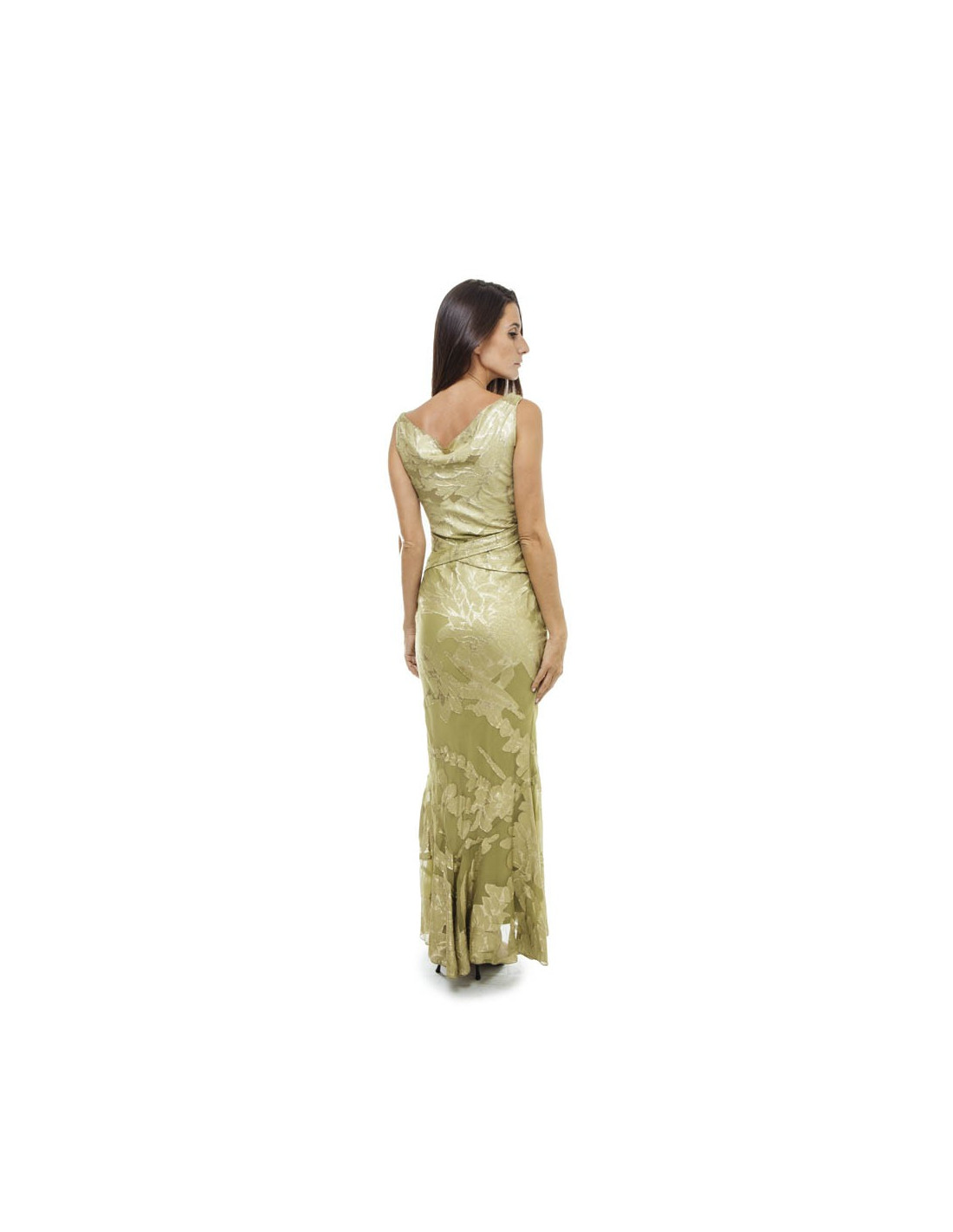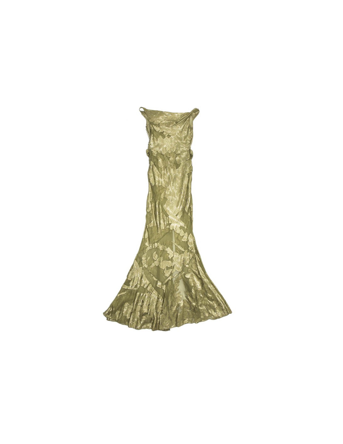 Robe du soir T 36 CHRISTIAN DIOR soie vert pâle et fils d'or