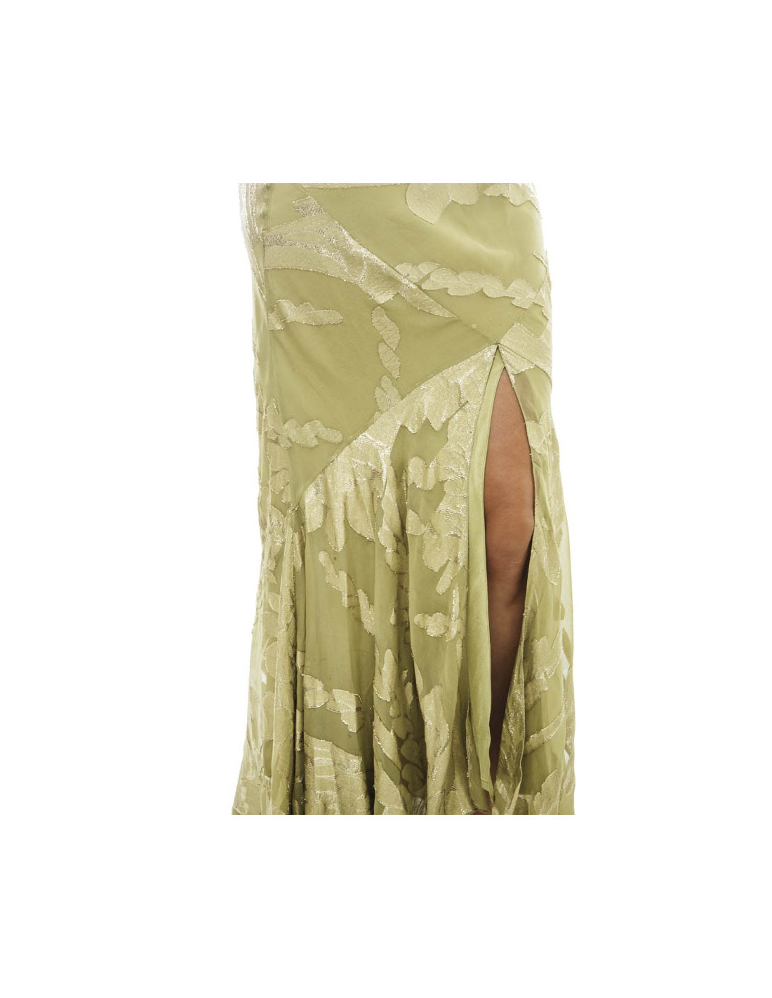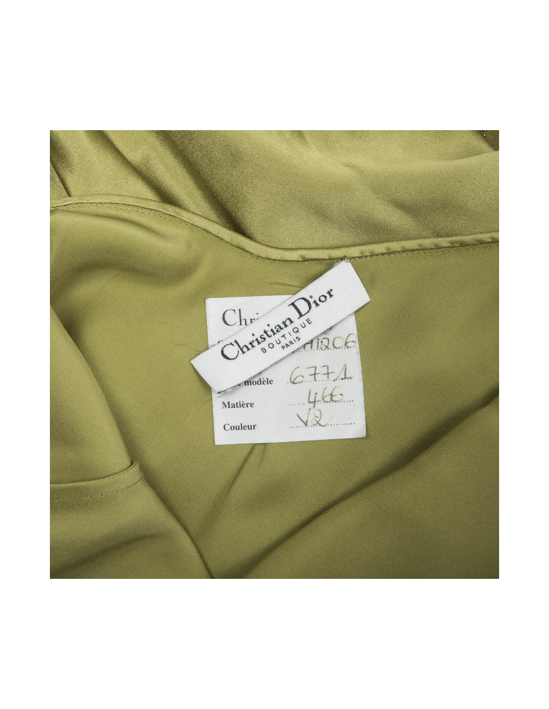 Sublime robe de la Maison Christian Dior par John Galliano, en soie (extensible) verte et brodée de fils d'or, avec une longue ouverture à l'avant au niveau du genou. Modèle collector.