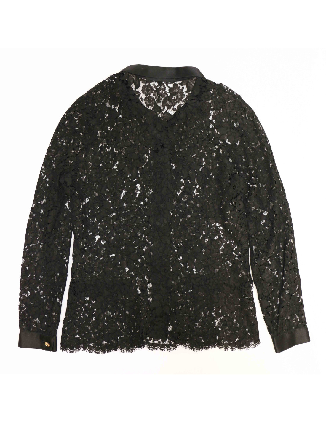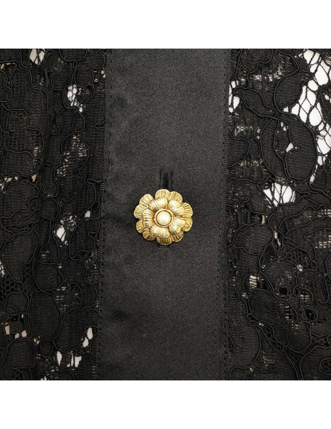 Détails : robe bustier en dentelle (fermeture zippée dans le dos). La chemise assortie se ferme par 5 boutons fleur avec au coeur une perle. Ils sont signés CHANEL à l'arrière.