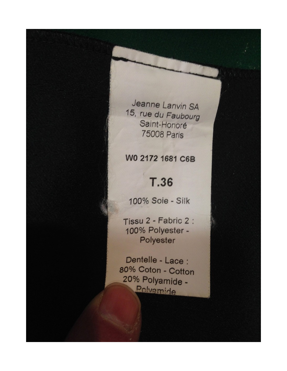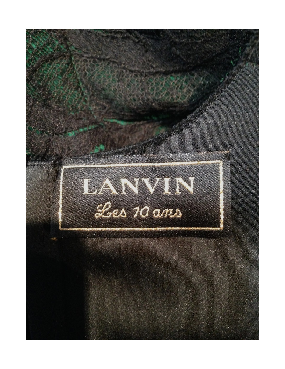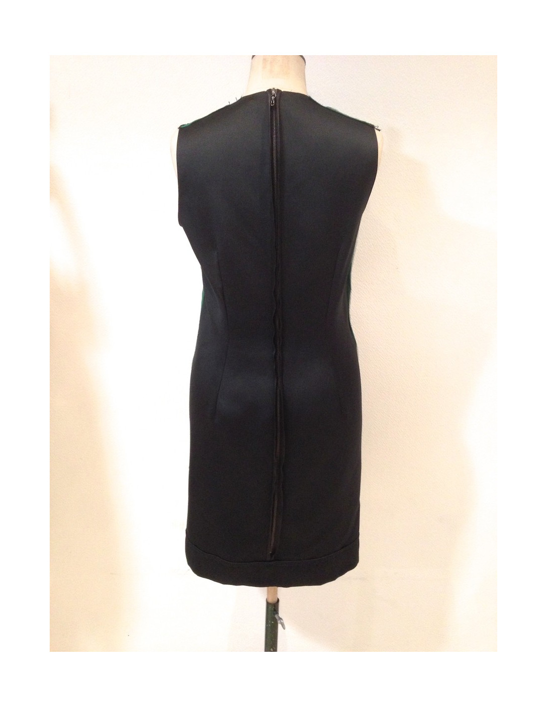 Jolie robe de cocktail sans manches LANVIN en taille 36, en soie duchesse noire à l'arrière d'où se profile une longue fermeture éclair de 87 cm, et verte en soie devant sur laquelle a été cousu une sublime dentelle noire sur toute la longueur.