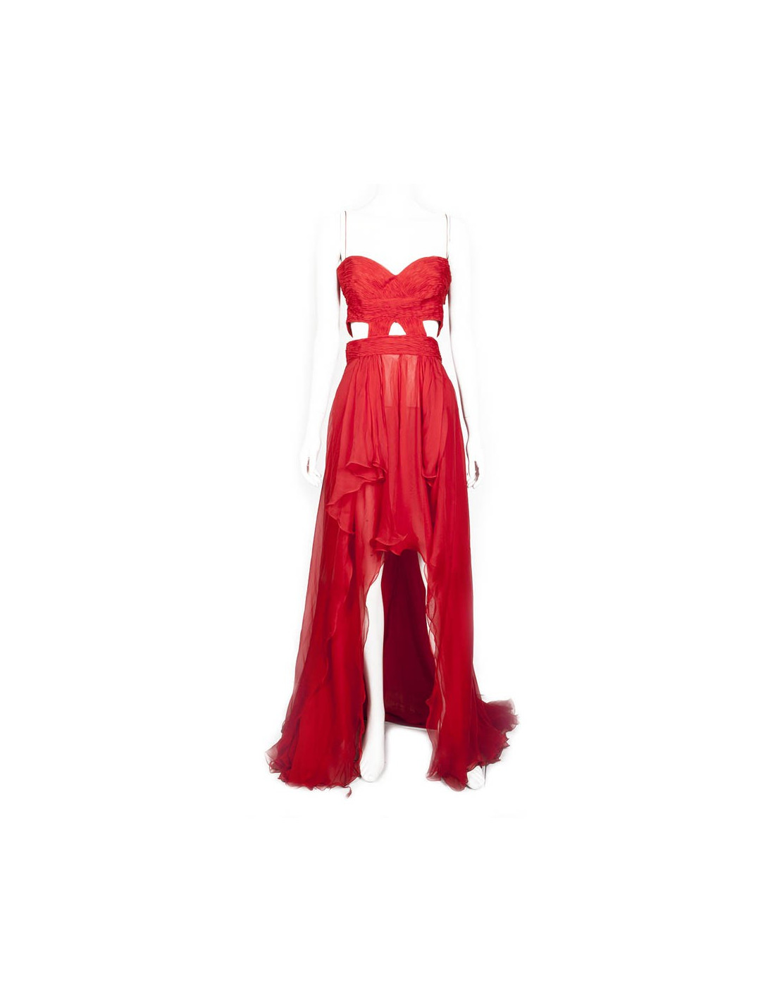 Robe du soir, Valentino , en soie rouge (la couleur fétiche de Monsieur Valentino) avec doublure dans la même matière.