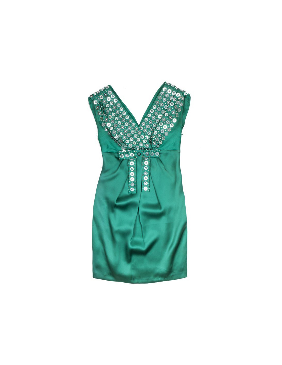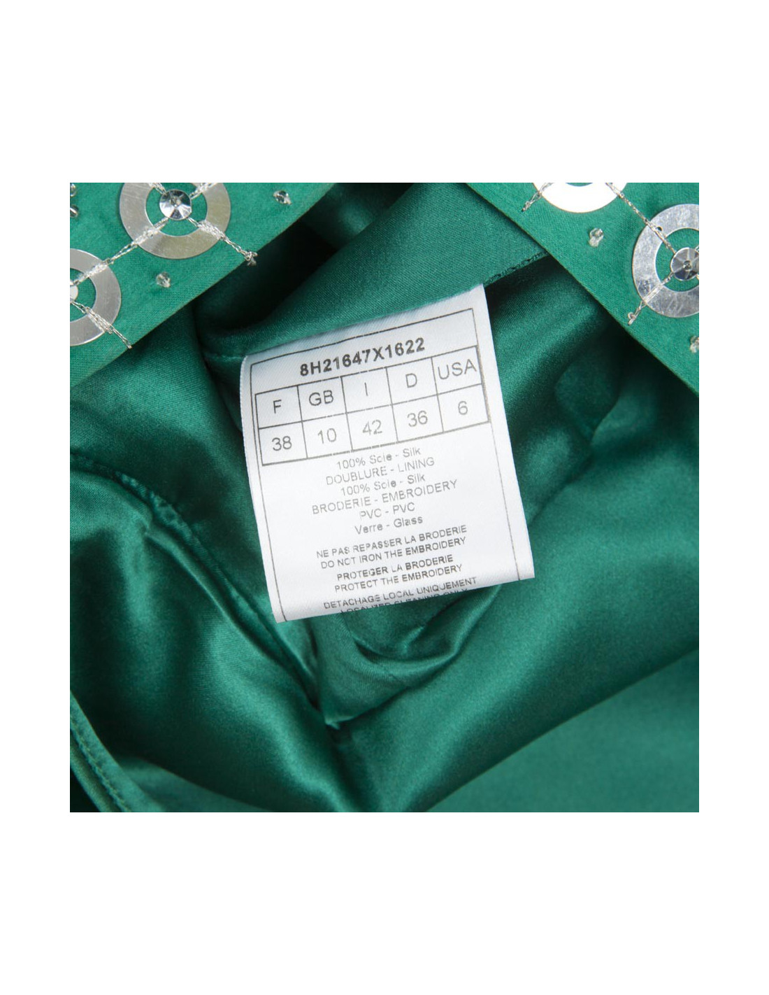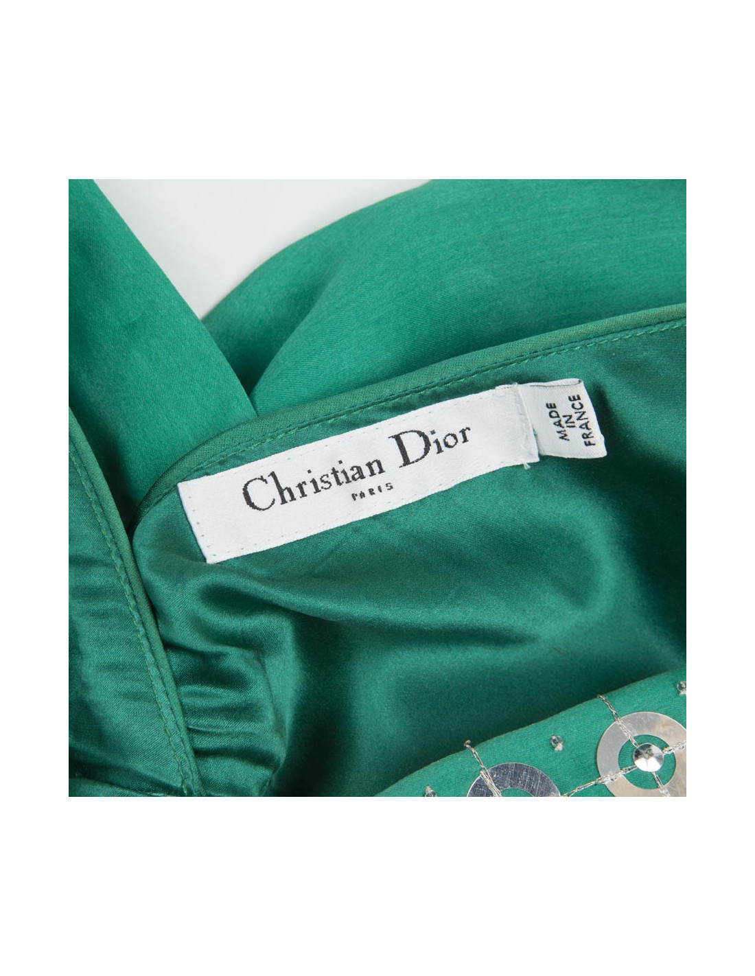 Robe de cocktail CHRISTIAN DIOR T 38 en soie vert malachite et sequins argent