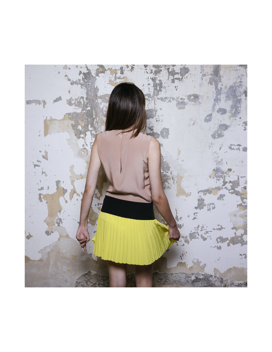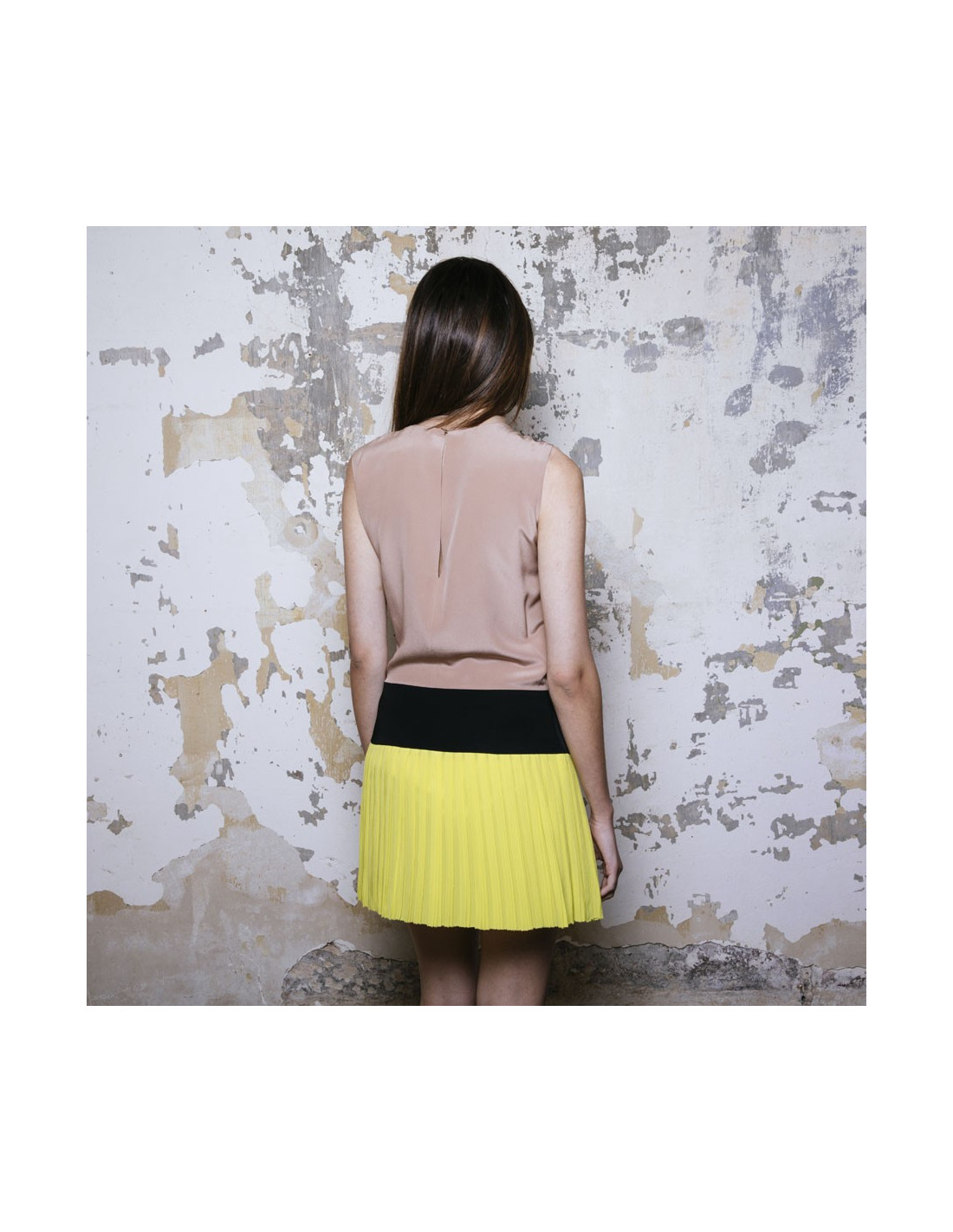 Dimensions à plat : largeur sous les aisselles 47 cm, hauteur totale 87 cm, largeur taille 40 cm (bande noire), ampleur du bas 59 cm, longueur fermeture zippée 32 cm