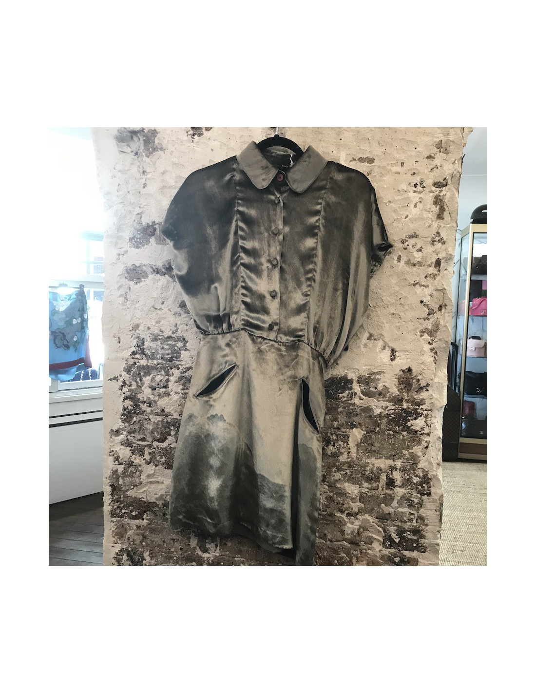 Derniers articles en stock ROBES Robe TSUMORI CHISATO T38/40 TSUMORI CHISATO 14959 400,00 € Charmante! Robe Tsumori Chisato en soie, mi-longue, bas asymétrique plus courte au dos, imprimé effet "main" de fleurs grises et de noeuds jaunes, le tout assorti au centre d'un magnifique nœud jaune en sequins. Col rond, manches courtes de couleur vert uni. Élastique au dos de la robe. Taille 38 fr voir 40 fr. 100% soie.Collection: Printemps/été Couleur:... Ajouter au panier