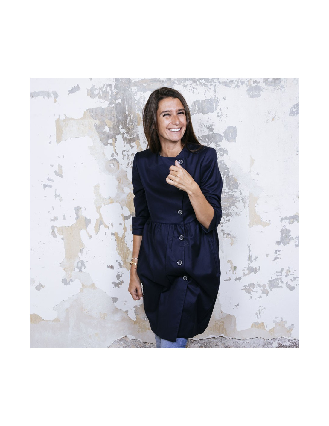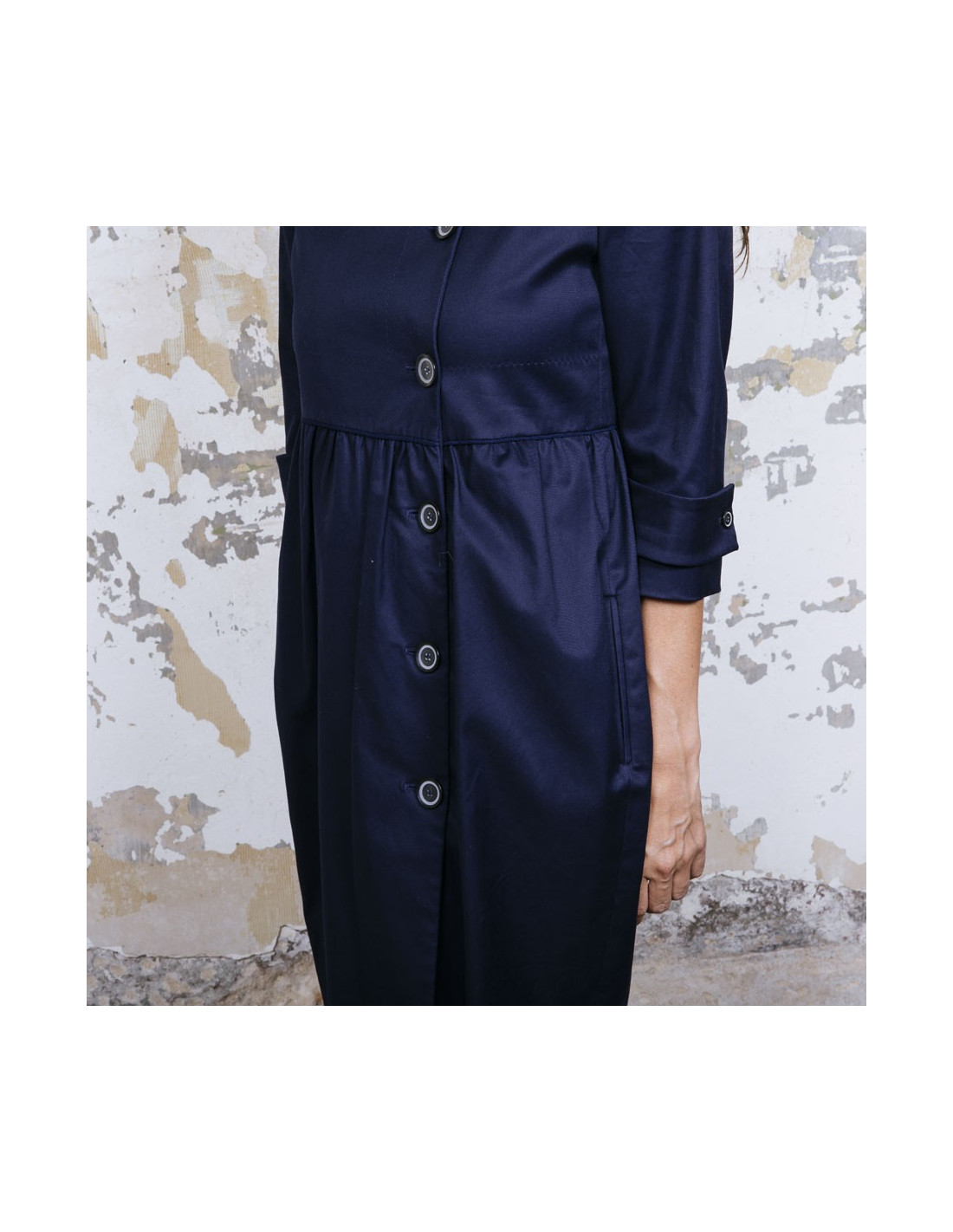 Robe manteau Stella Mc Cartney en coton bleu marine, boutonné sur l'avant.