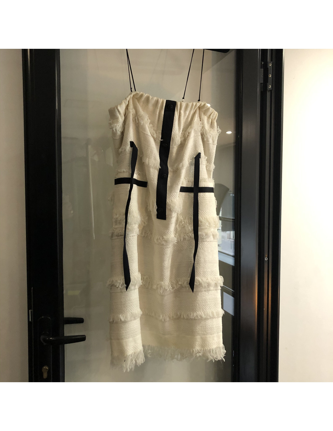 Robe  bustier T 42  CHANEL   écrue et rubans noirs
