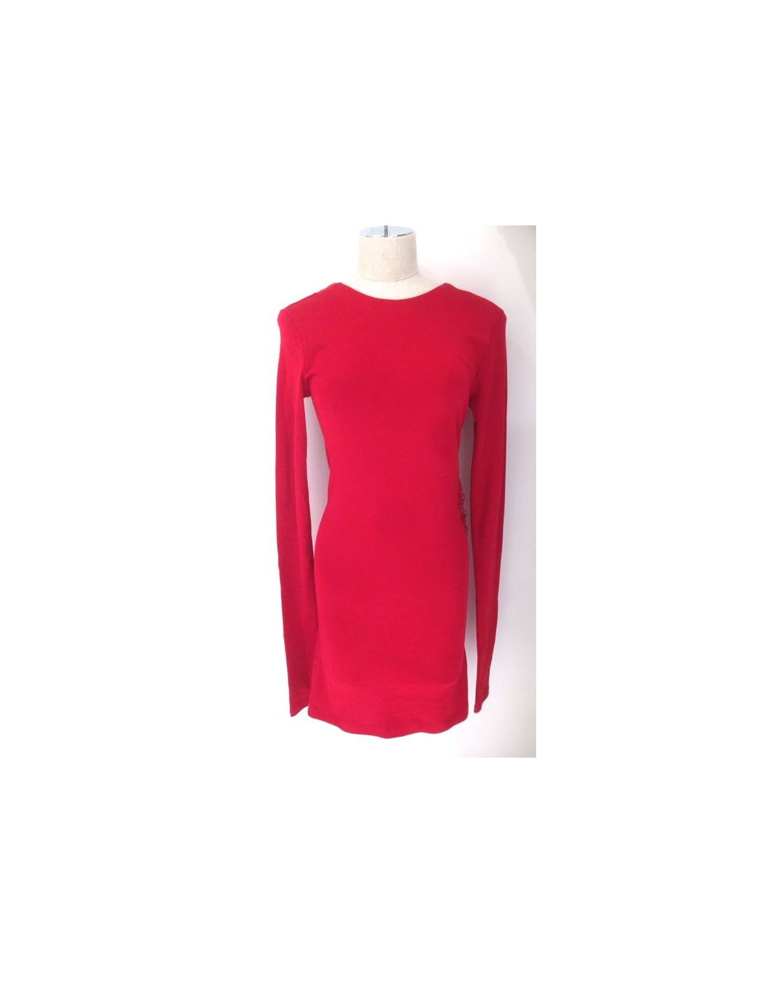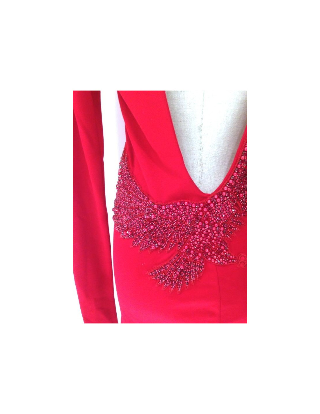 Collector ! robe T40 BALMAIN en jersey coton rouge et sertie de perles et de strass rouges dans le dos dessinant un aigle. Cette robe sophistiquée est ouverte dans le dos. Elle se porte idéalement le soir. Fabriquée en France, 100% coton. (prix public 4500euros).