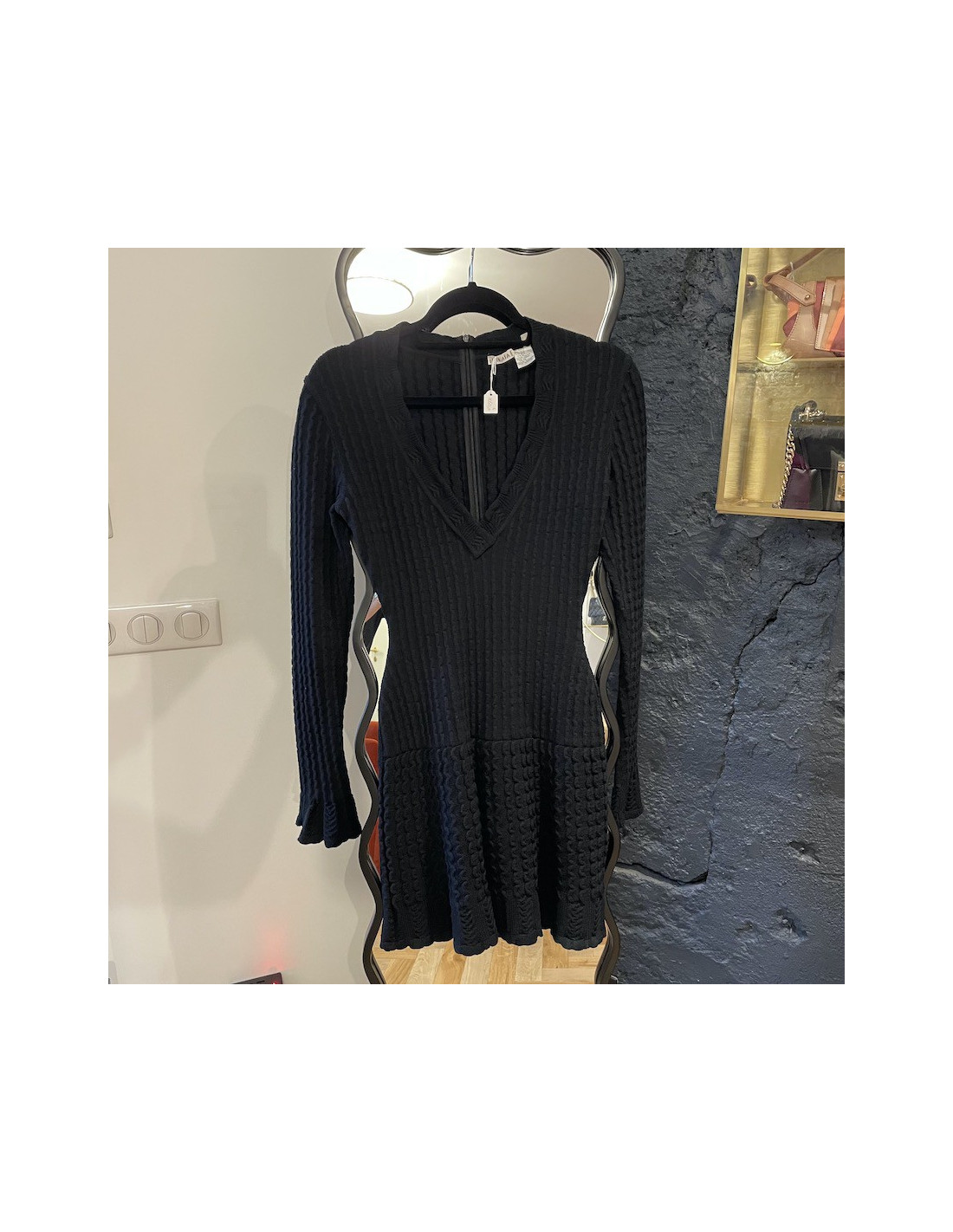 Derniers articles en stock CHANEL Robe CHANEL cachemire T40 CHANEL 33306 2 700,00 € Robe CHANEL cachemire et soie Condition : très bon étatPays de fabrication : FranceTaille : 40FRMatière : cachemire, soieCouleur : beige, rose, noirDimensions à plat: épaules 42 cm, sous la poitrine 48 cm, hauteur 80 cm, longueur des manches 75 cm, tour de poignet 20 cmAnnée : Automne 2003Détails : imprimé fleuri, franges noires sur les manches et sur le... Ajouter au panier