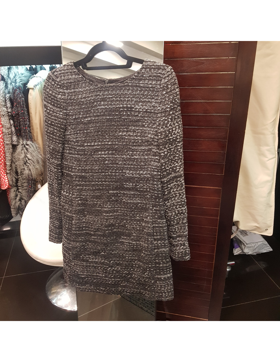 Derniers articles en stock ROBES Robe tweed CHANEL T34 bordeaux, or CHANEL 32070 1 500,00 € Robe tweed CHANEL Métiers d'art Paris Rome 2015-2016 Condition : Très bon étatPays de fabrication : FranceTaille : 34 frMatière : tweed, soieCouleur : Bordeaux, bleu, doréDimensions à plat : épaules : 36 cm, sous la poitrine : 40 cm, hauteur : 100 cm, longueur des manches : 32 cm, tour bas de manche : 26 cmFermeture éclaire dans le dosOuverture bas... Ajouter au panier