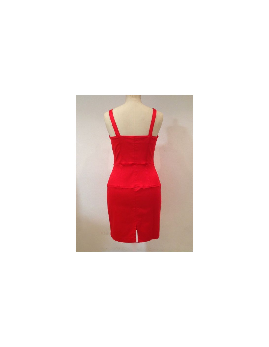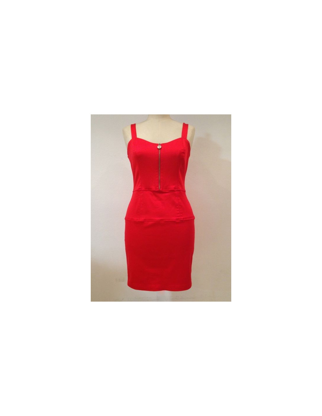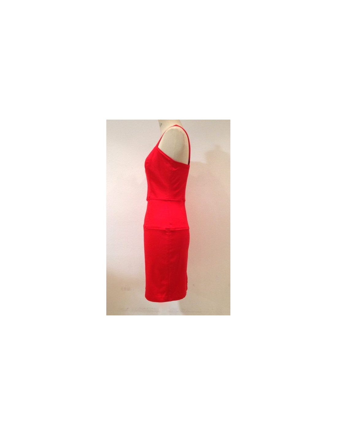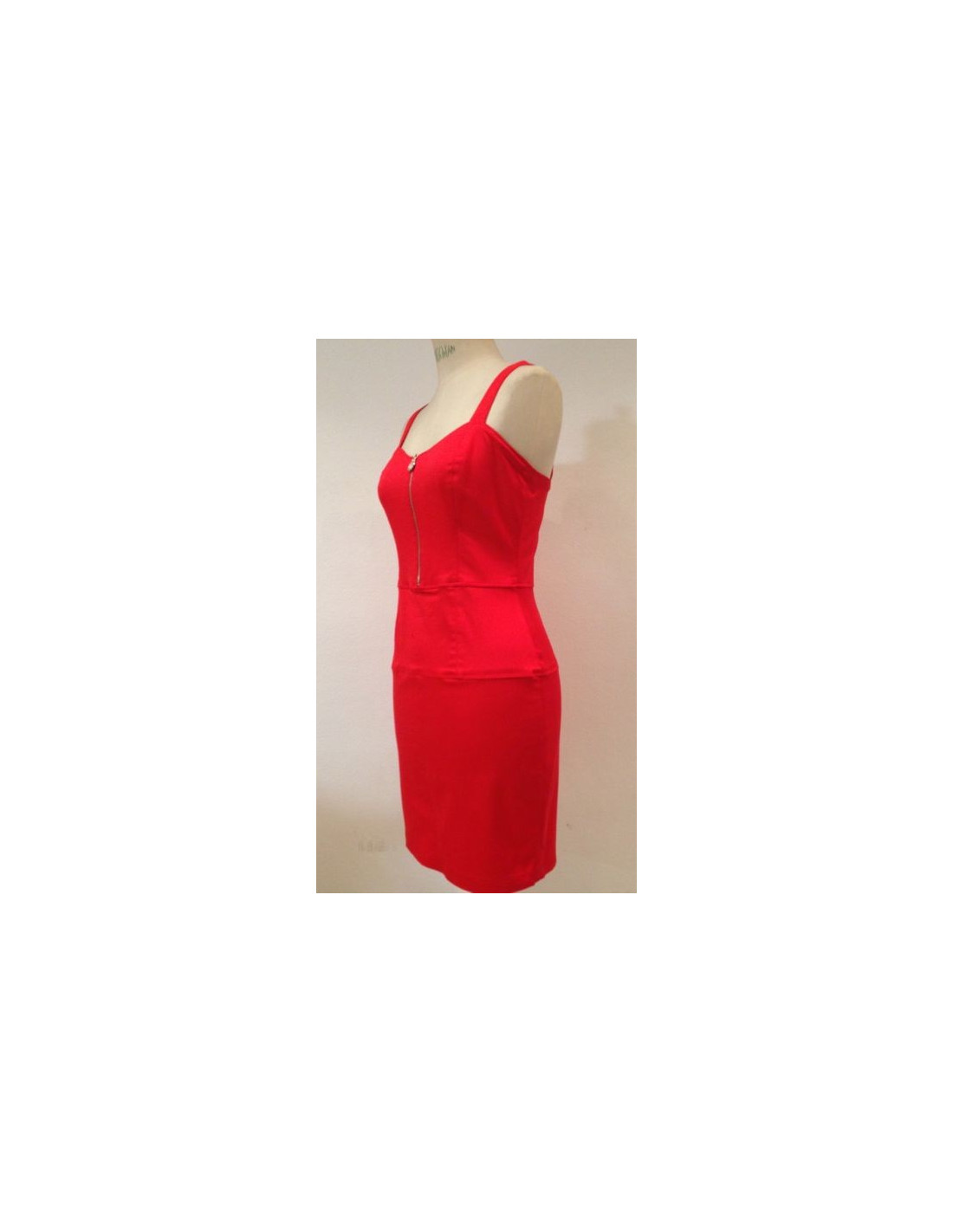 Robe courte rouge VERSUS, taille 30/44 (IT), de la maison Gianni Versace. Robe corset à bretelles avec ouverture à fermture éclair (zip Lampo) avec écusson en forme de lion (symbole de la marque).Petite fente à l'arrière.