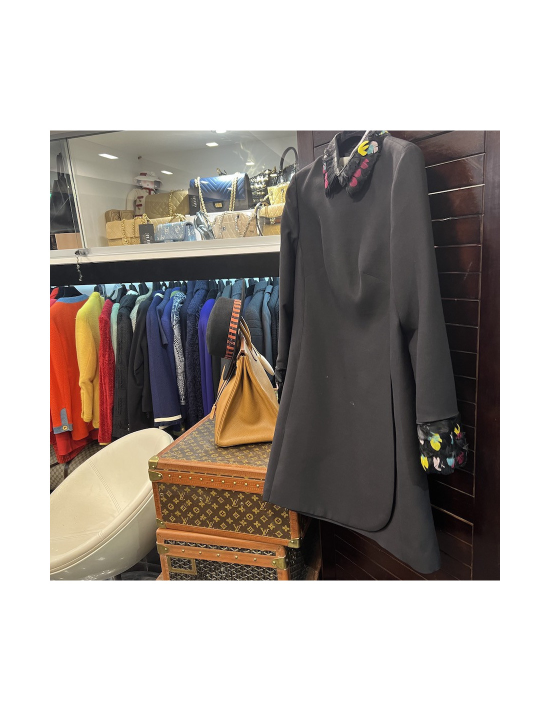 Exclusivité web ! Derniers articles en stock ROBES Robe LOUIS VUITTON T 40 noire LOUIS VUITTON 18743 700,00 € Robe de cocktail noire Louis Vuitton T40 Condition: très bon étatTaille:40FRComposition: 42% polyester, 40% laine, 18% soieCouleur: noirDimensions à plat : Largeur poitrine : 40 cm, largeur taille : 40,5 cm, longueur : 78 cmDétails: Robe bustier à effet drapé (corset intégré) et jupe courte trapèze en laine, fermeture de la robe par un zip au dos. Ajouter au panier