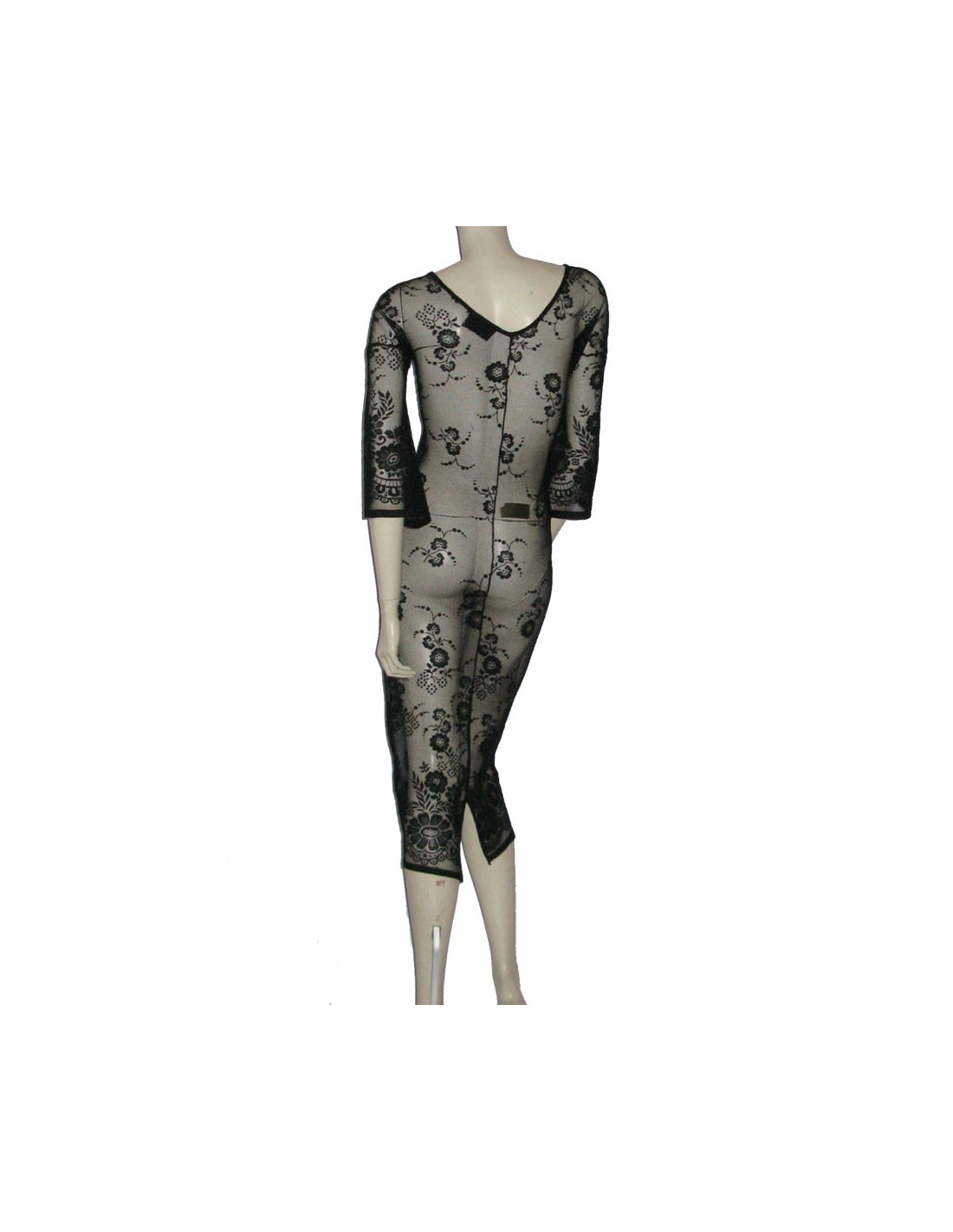 Très joli fond de robe Dolce Gabbana, effet dentelle noire transparent, manches 3 /4, col V au dos et fente sur le côté de la robe.