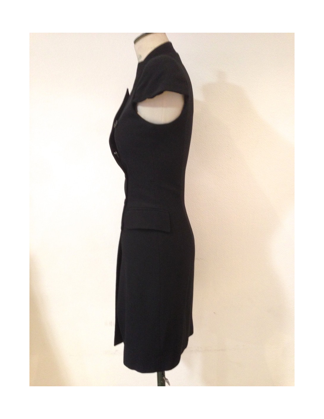 Très sobre robe boutonnage croisé, manches américaines, noire et près du corps, de la célèbre Maison Alexander Mc Queen. La robe a déjà été portée mais elle est en très bon état. La doublure est noire et les boutons aussi.