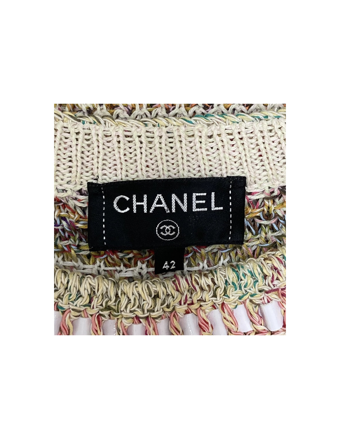 Promo ! Nouveau Vendu ROBES Robe Chanel cachemire 2021-2022 CHANEL 40736 2 900,00 € Robe Chanel cachemire sans manche Condition : très bon étatPays de fabrication : ItalieCollection : Automne HiverAnnée : 2021-2022Taille : 38 frMatière : cachemire, métal, strassCouleur : rose, violet, vertDoublure : cachemire Dimensions à plat : largeur des épaules 38 cm, sous les aisselles 42 cm, hauteur totale 85 cmDétails : robe col roulé sans manche... Voir