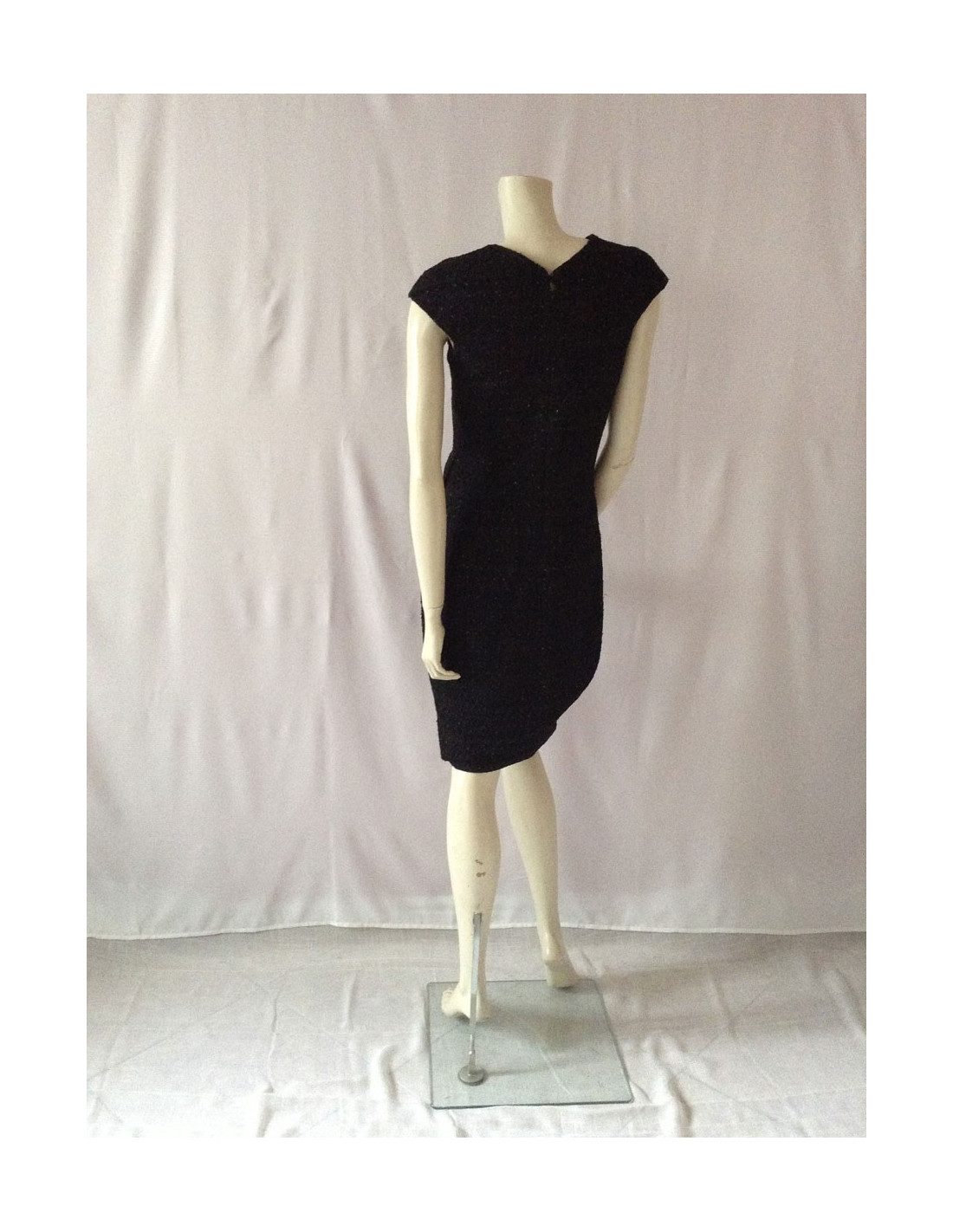 Robe CHANEL T36 fr en tweed noir (jamais porté), à manches raglans, une bande de tissu géométrique en tweed noir à la forme arrondie de la même couleur que la robe est appliquée à l'avant comme à l'arrière. Il y a 1 poche sur chaque coté de la robe et un tout petit col V au dos, suivi d'une longue fermeture fine noire zippée au logo CC. Composition: 90% coton, doublure est en soie 100%. Une jolie robe qui développera tout son potentiel de féminité lorsqu'elle sera portée avec des talons. (Étiquette Chanel barrée) Collection récente.