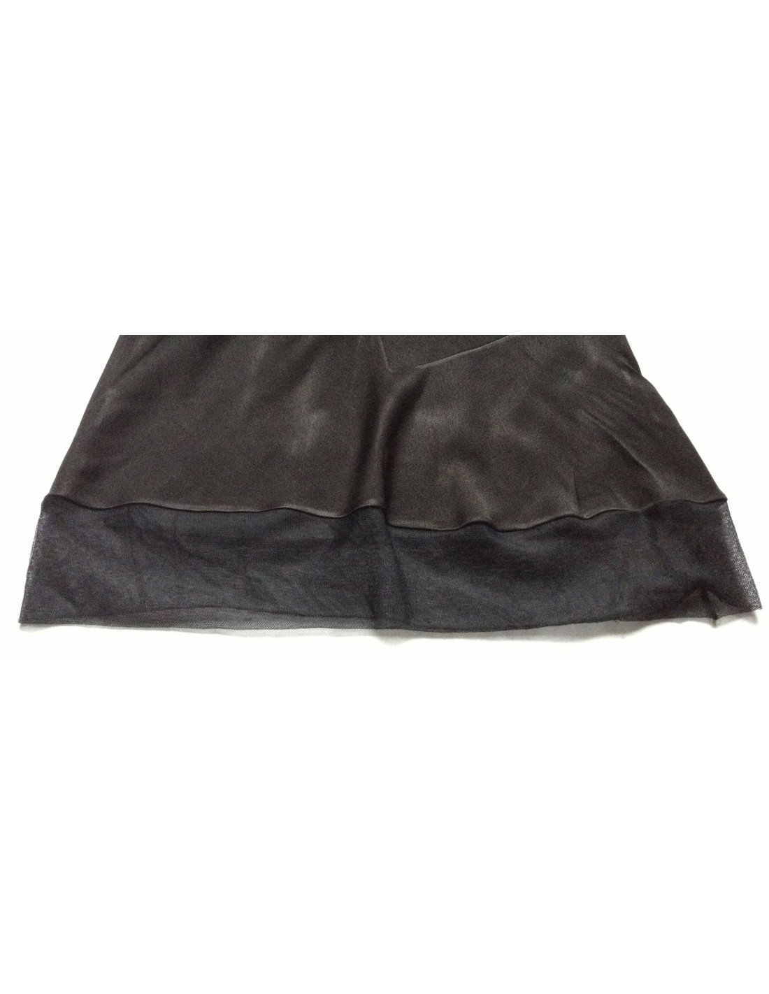 Robe de cocktail Christian Dior noire, fluide, longueur en dessous du genou, ligne ajustée. le col, l'ourlet ainsi qu'une partie du dos est bordé de tulle. Robe sans manche, taille 40FR composé de 68% acétate, 32% viscose et le tulle est en 100% polyamide. "la petite robe noire est un élément essentiel à avoir dans son dressing."
